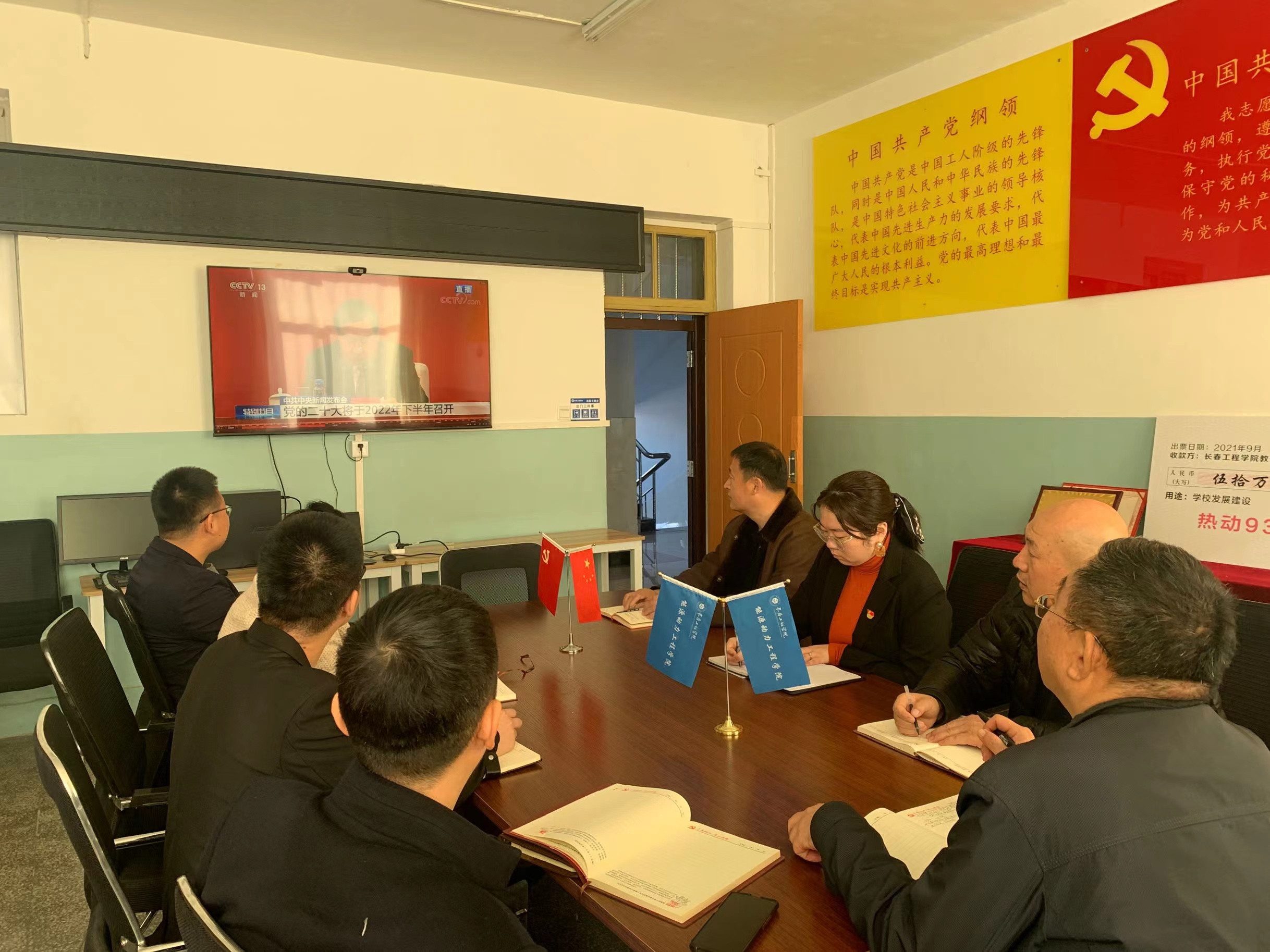 2021年11月12日上午10时,中共中央举行新闻发布会介绍党的十九届六中全会精神。环球网_环球(中国)党委高度重视,积极组织师生员工收听收看发布会。其中,环球网_环球(中国)领导班子成员、两委委员和相关职能部门负责人在办公楼第二会议室集中观看了发布会现场直播;各基层党委、党总支、直属党支部也结合实际组织本部门党员干部、教师、学生收看发布会现场直播。