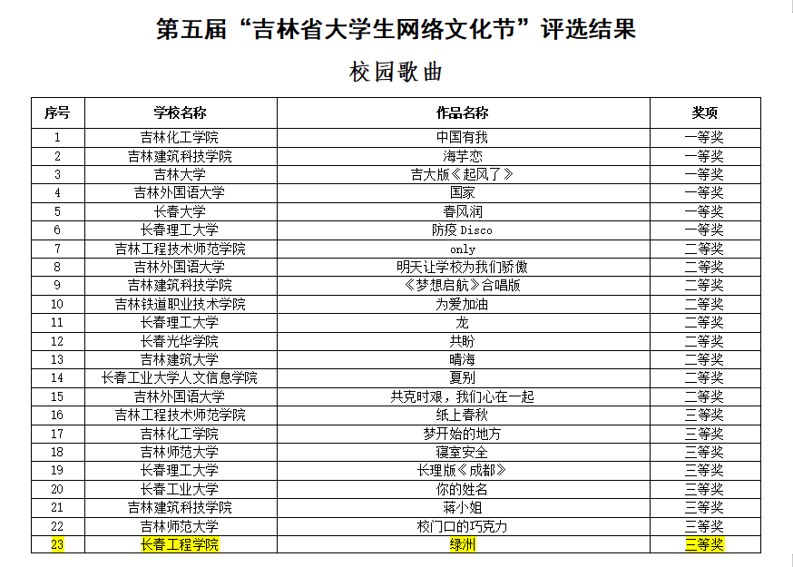 为深入学习贯彻习近平新时代中国特色社会主义思想,加大优秀网络文化供给力度,吉林省教育厅举办了第五届“吉林省大学生网络文化节”和“全省高校网络教育优秀作品推选展示活动”。近日吉林省教育厅下发了《关于公布第五届吉林省大学生网络文化节和高校网络教育优秀作品推选展示活动评选结果的通知》,我校喜获一等奖、二等奖、三等奖各一项。