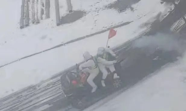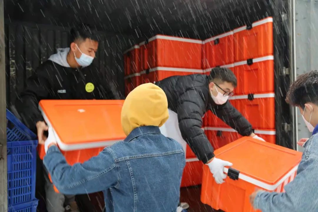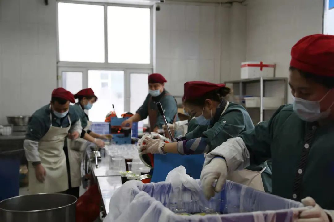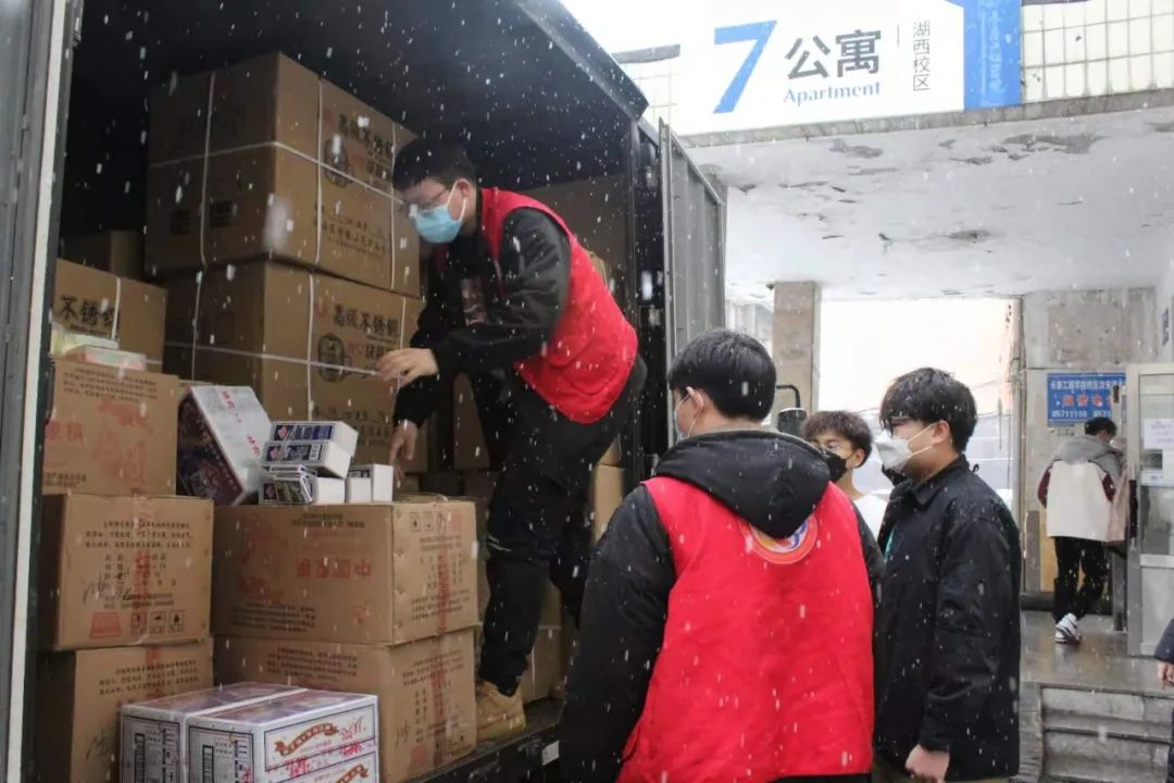 志愿者们不畏艰险、不辞辛劳,每天为隔离封寝的学生们送上热腾腾的饭菜。笨重的防护衣,雪地上蹒跚的脚步,都阻止不了他们成为温暖的“大白”。