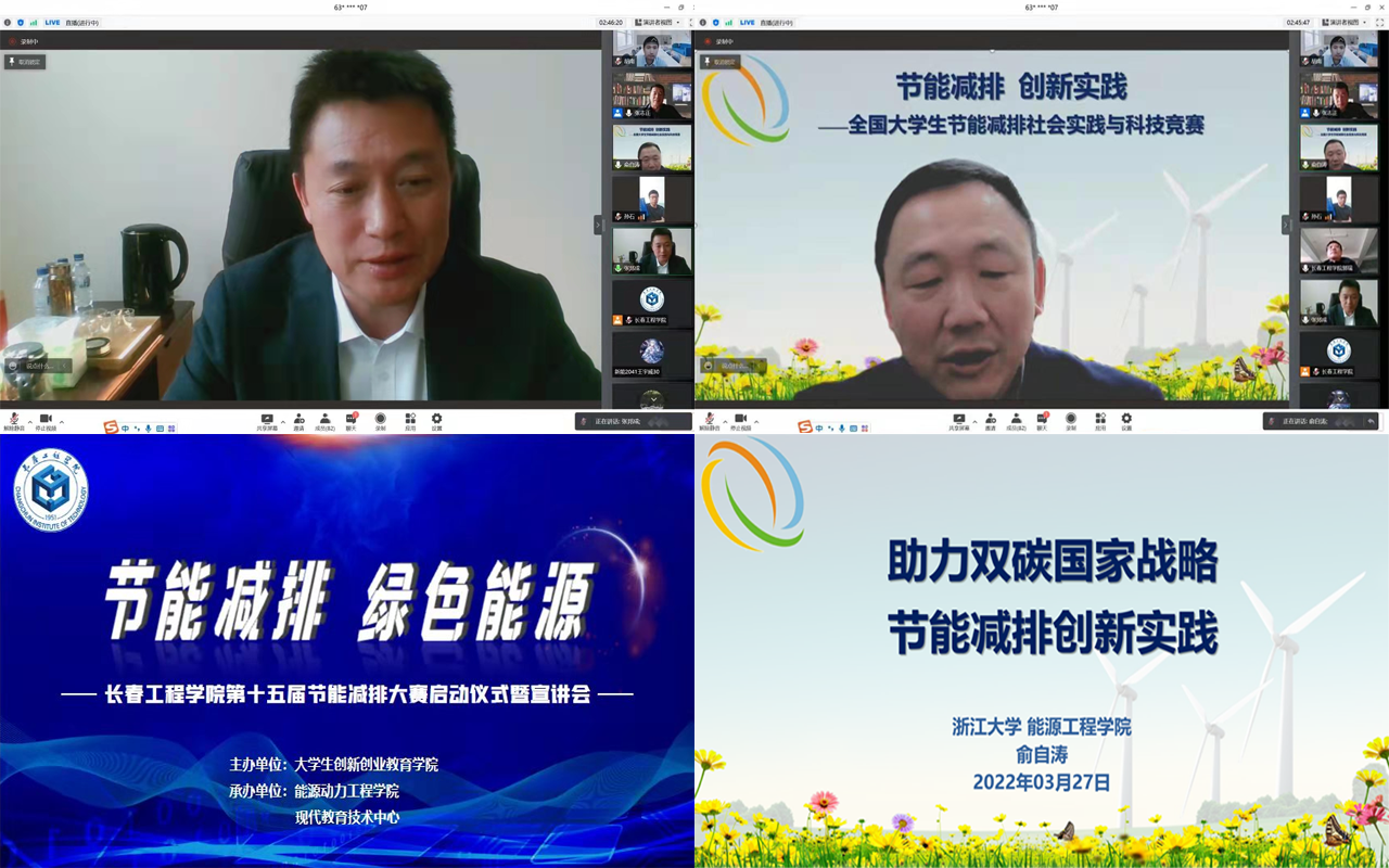 3月27日,环球网_环球(中国)第十五届大学生节能减排社会实践与科技竞赛启动仪式和专家报告会在线上举行。环球网_环球(中国)副校长张邦成出席仪式并讲话。全国大学生节能减排社会实践与科技竞赛委员会秘书长、浙江大学俞自涛教授受邀做了题为《助力双碳国家战略 节能减排创新实践》的线上专题报告。