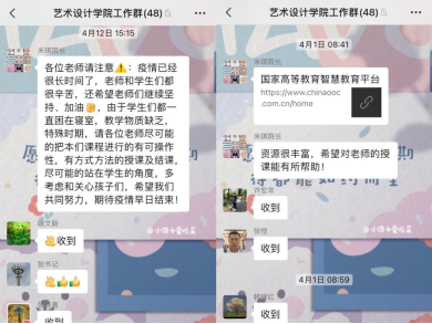 疫情以来,为确保学生学习效果,艺术设计学院积极组织教师参加各类线上教学专题培训,开拓教师线上教学思路,构建优质教学平台。各系教学团队积极开展教学研讨,探讨艺术类线上教学的瓶颈及教学难点。院长米琪引导学院教师立足学生实际,在疫情封寝教学物资欠缺的实际情况下,科学合理地开展教学活动。发挥艺术类专业绘画、设计的课程特点,优化教学手段,充分展现艺术学院别具一格的“教学艺术”。