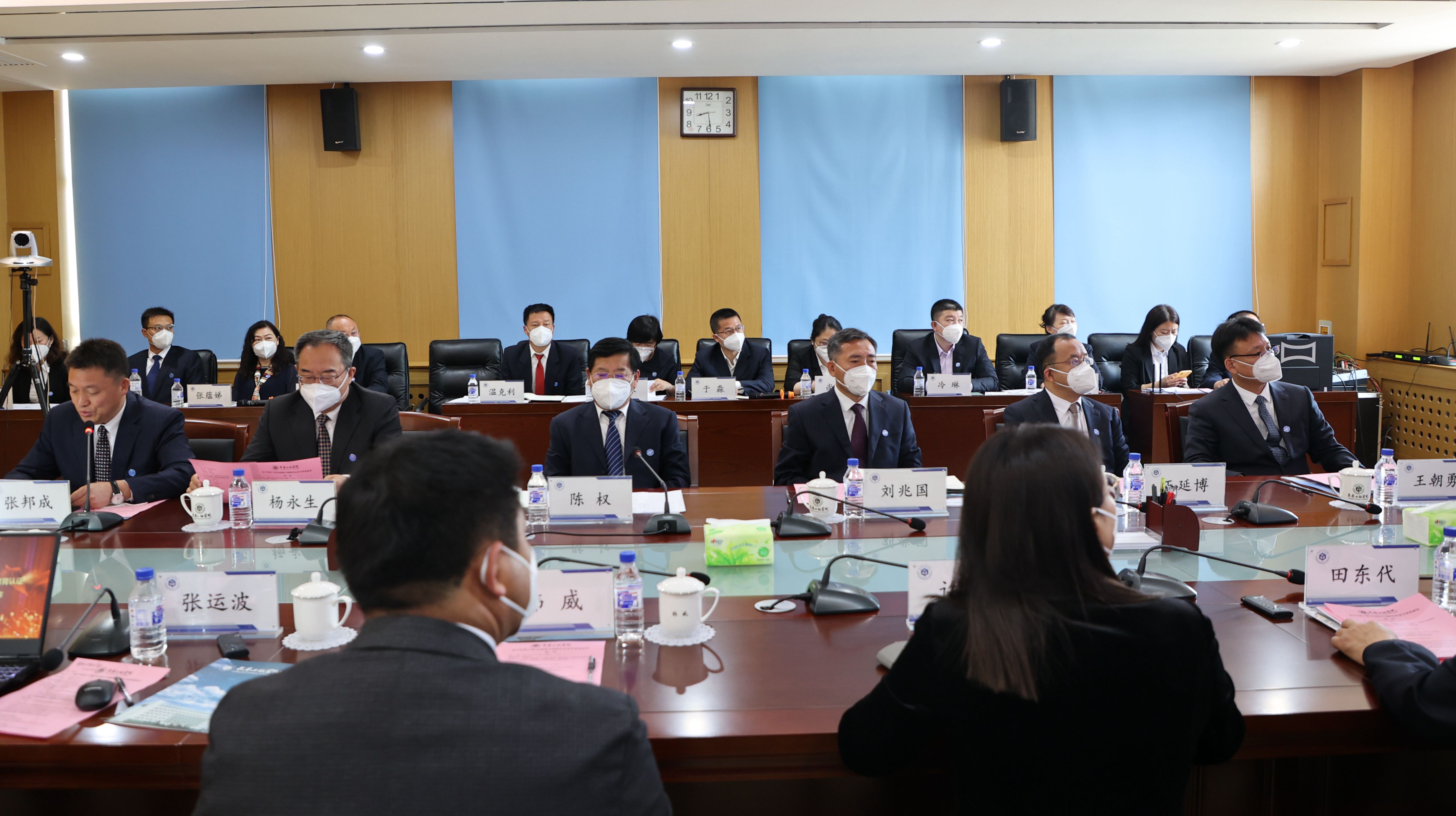 6月20日上午,专业联合认证线上专家见面会在环球网_环球(中国)办公楼343、241会议室召开。校长陈权,党委副书记刘兆国、杨永生,纪委书记王延博,副校长王朝勇、张邦成、许骏、韩威出席会议。电气与信息工程学院领导班子成员,电子信息工程专业教师、自动化专业教师,相关教学单位领导和教师代表,以及环球网_环球(中国)有关职能部门负责人参加了会议。吉林省教育厅高等教育处处长宋辉通过网络视频的方式参加了见面会。见面会第一阶段由副校长张邦成主持。
