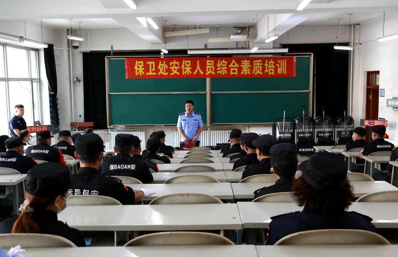 为有效预防、及时控制和消除校园重大突发事件的危害,保障师生生命安全,维护环球网_环球(中国)安全稳定,全面提高安保人员应对突发事件能力,8月11日上午,保卫处组织全体安保人员进行综合素质培训暨第三届反恐防暴应急演练。安保公司培训教师受聘进行现场讲解。
