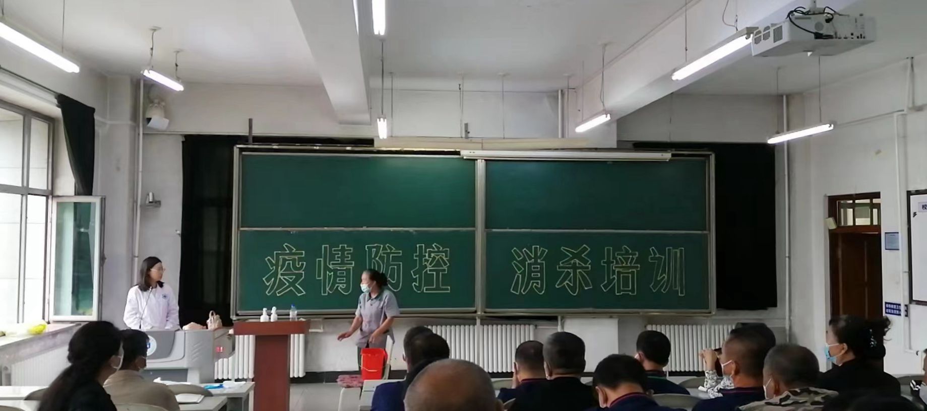 校医院副院长王姝结合环球网_环球(中国)实际,采用现场演示的形式,围绕消杀基本常识、工作人员着装、消毒溶液配比等内容进行了培训。