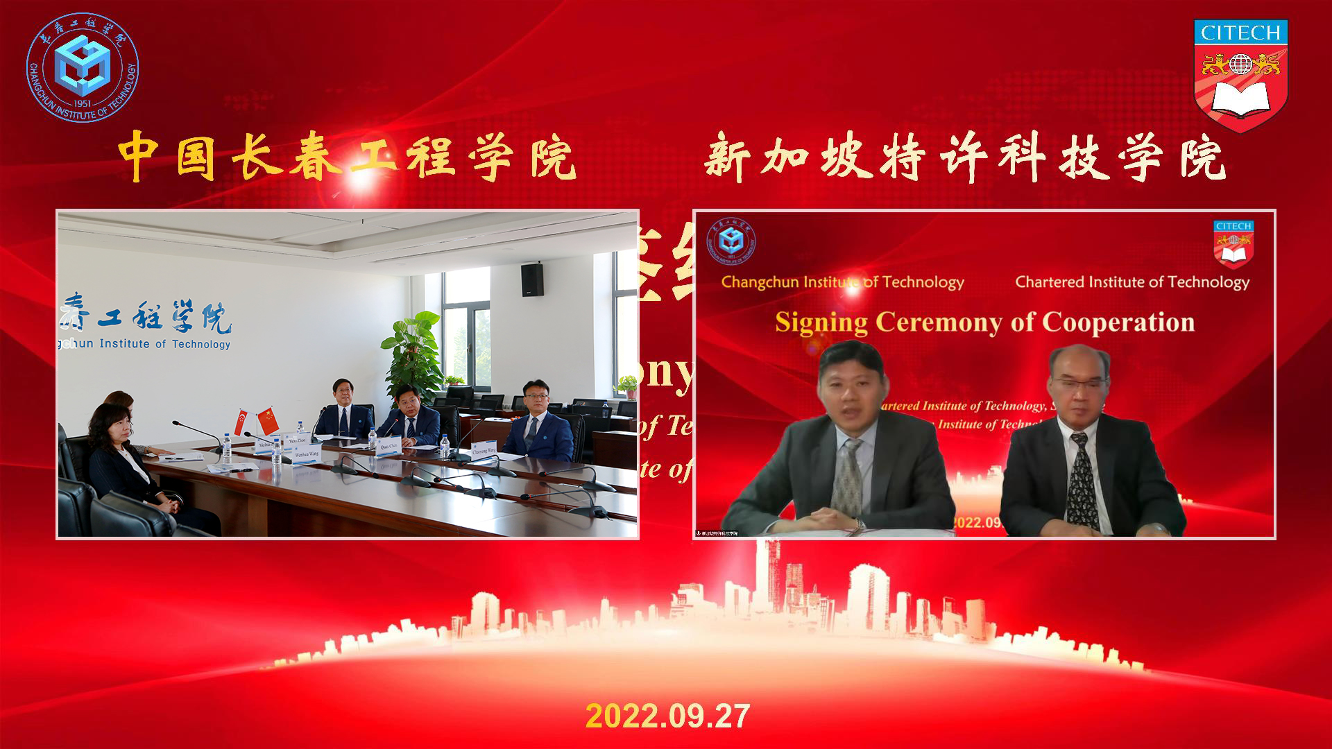 9月27日,我校与新加坡特许科技学院签署合作备忘录,就开展国际合作与交流事宜达成一致。签约仪式以视频会议的方式在我校和新加坡特许科技学院同步举行。