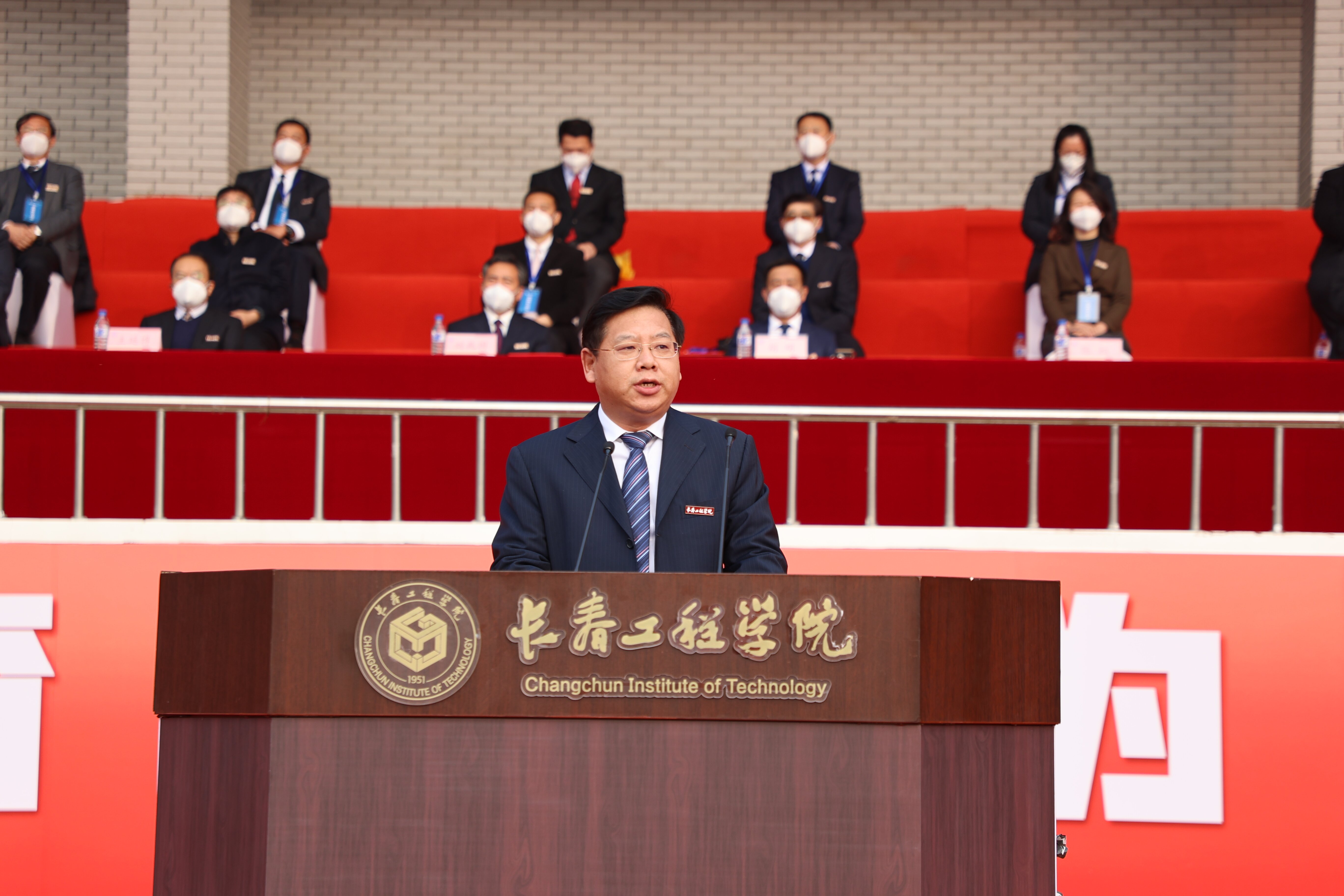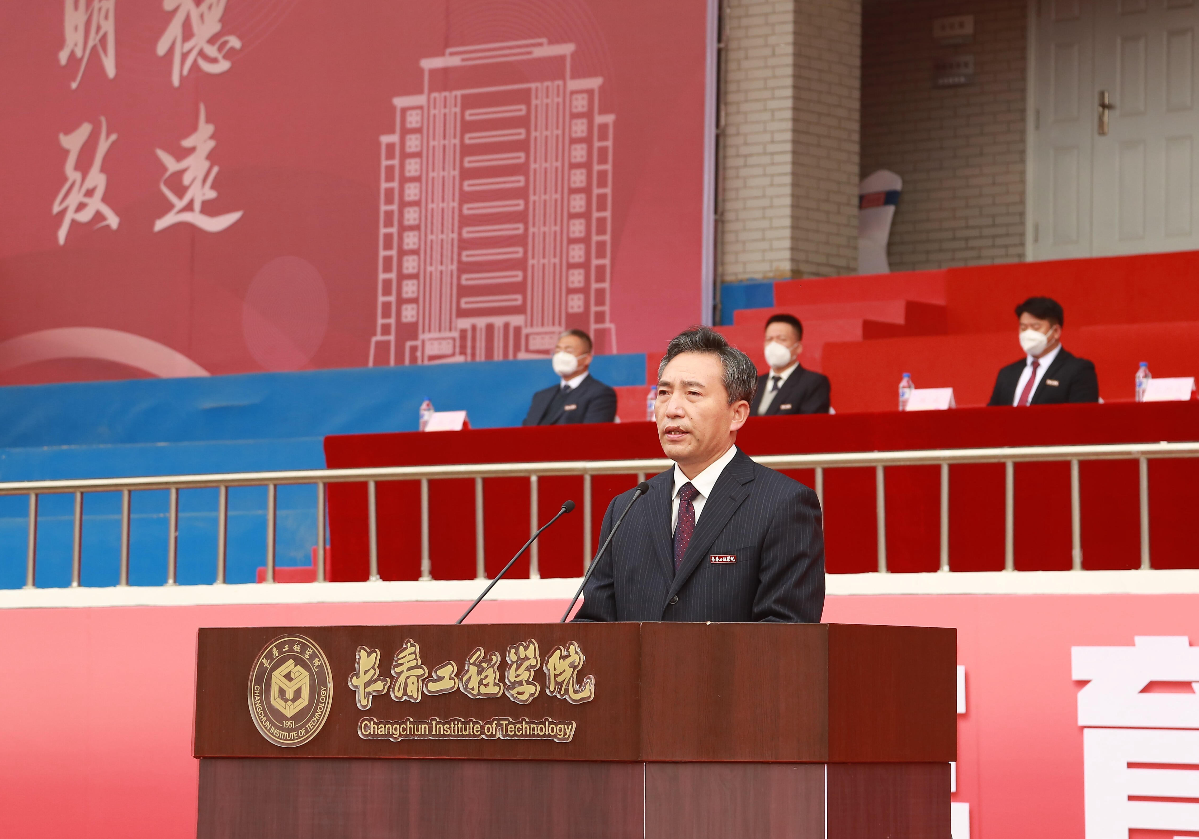 校长陈权在典礼上致辞,他首先代表环球网_环球(中国)向全体新同学表示最热烈的欢迎!陈权校长指出,70多年来,伴随着新中国建设、改革、发展的脚步,长工程人务实进取、拾级而上,谱就了辉煌的办学历程。一代人有一代人的使命,一代人有一代人的光荣。未来长工程的发展会怎样,取决于我们,更取决于你们!他对同学们提出了四点期望,一是要明德,同学们要把修身明德作为人生的必修课、常修课,明大德、守公德、严私德,筑牢安身立命之本。要立报效祖国之志,尽服务人民之责,明方向、辨是非、走正路,弘扬社会主义核心价值观,弘扬人间的真善美,弘扬时代的新风正气。二是要致远,同学们要从一开始就能有高举远慕的视野、志存高远的追求、厚积薄发的积累、宁静专注的执著,用一颗如磐之心坚守自己的理想信念,用一颗赤诚之心奉献家国的前途未来,用一颗宁静之心追求自己的使命责任。三是要笃行,同学们要把实践作为成长的必由之路,把坚持作为成功的不二法门,每一个让人羡慕的收获,都是长期努力拼来的!少份急躁、多些平和,就可能取得更大的人生成就!四是要务实,同学们要恪守求真务实的大学精神,科学严谨地探究学问,诚实守信地为人处世,脚踏实地地追逐梦想,从大处着眼、从小事做起,低调做人、高调做事,靠实诚立身、凭实绩进步。