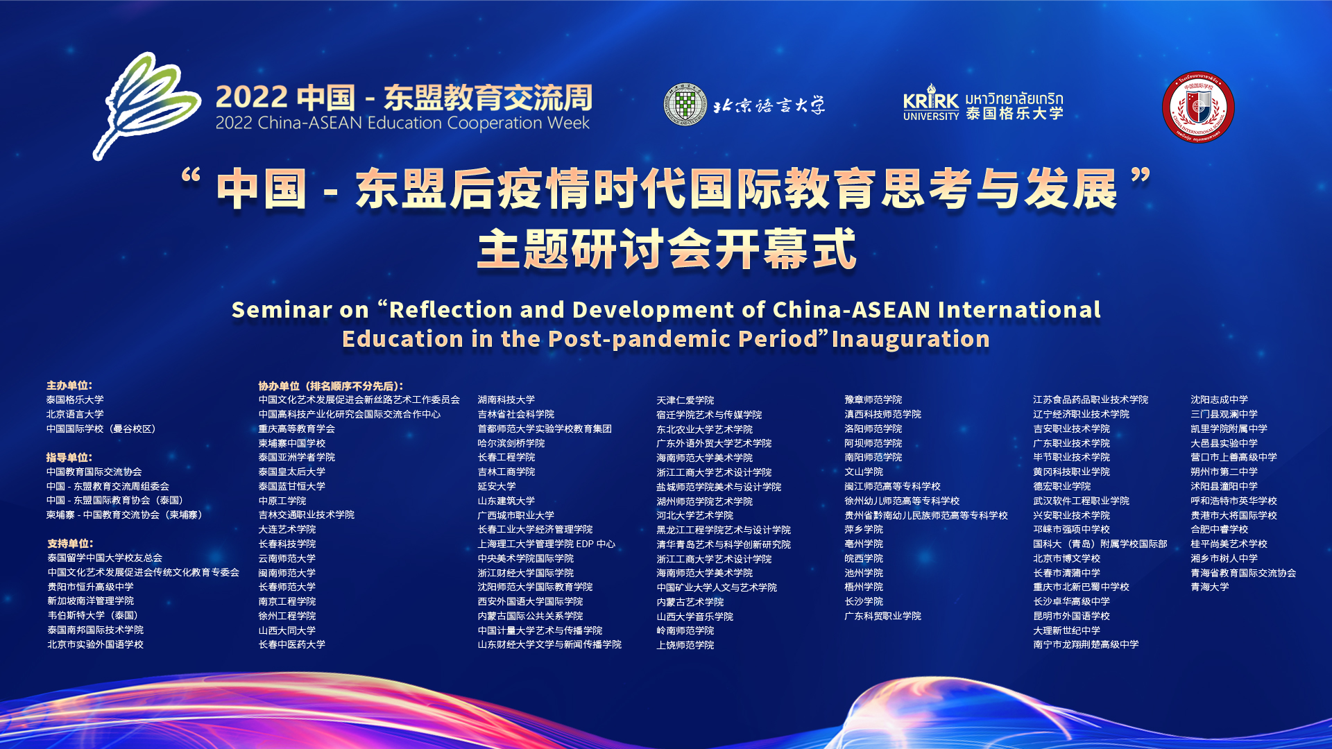 12月3日至4日,中国-东盟教育交流周“后疫情时代国际教育思考与发展”主题研讨会在泰国曼谷举办。此次研讨会在中国教育国际交流协会、中国东盟国际教育协会等单位的指导下,由泰国格乐大学、泰国-中国国际环球网_环球(中国)和北京语言大学三校联合主办,旨在增进中国与东盟友谊,开展教育合作,加强区域间文化交流。我校作为研讨会协办单位之一线上参加活动。校长陈权、副校长王朝勇参加了会议。