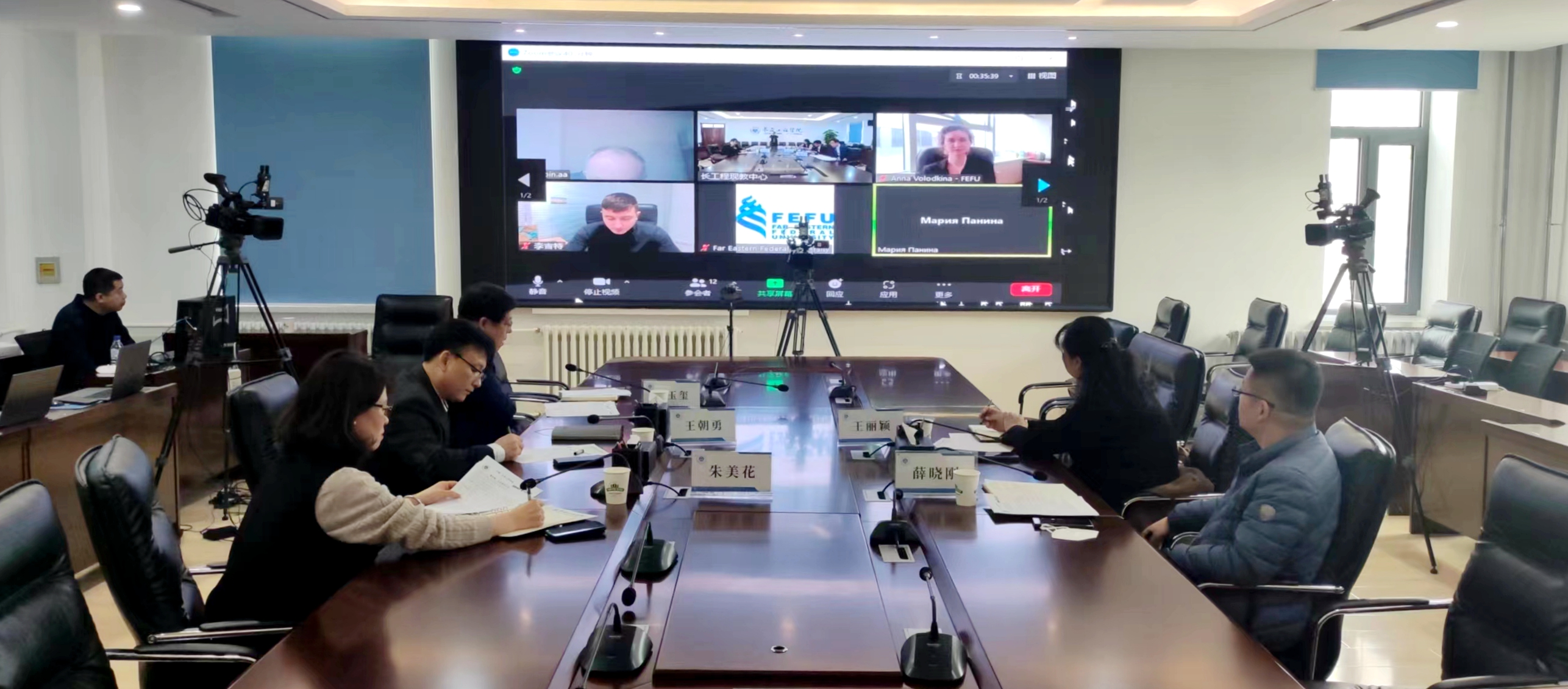 3月6日,我校与俄罗斯远东联邦大学以视频会议的方式召开合作洽谈会。会议围绕人才联合培养、教育科研合作、学生短期交流等事宜进行了广泛交流。我校副校长王朝勇出席了会议。会议由国际合作与交流处处长赵玉玺主持。