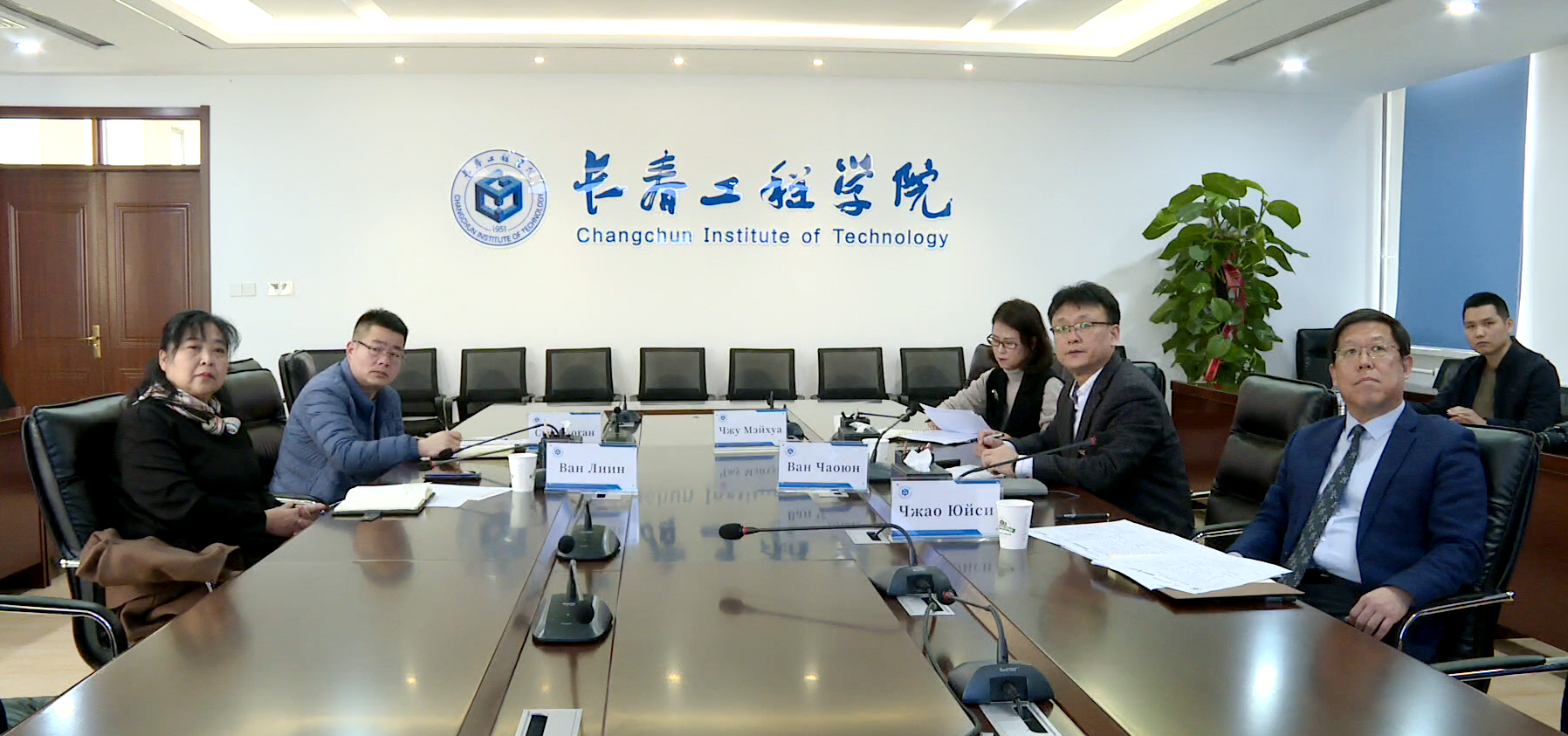 俄罗斯远东联邦大学副校长助理德里亚宾,国际推广、旅游及礼宾中心主任沃洛德基娜,工程学院院长塔季扬娜等人员,我校相关学院负责人、国际合作与交流处相关人员参加了会议。