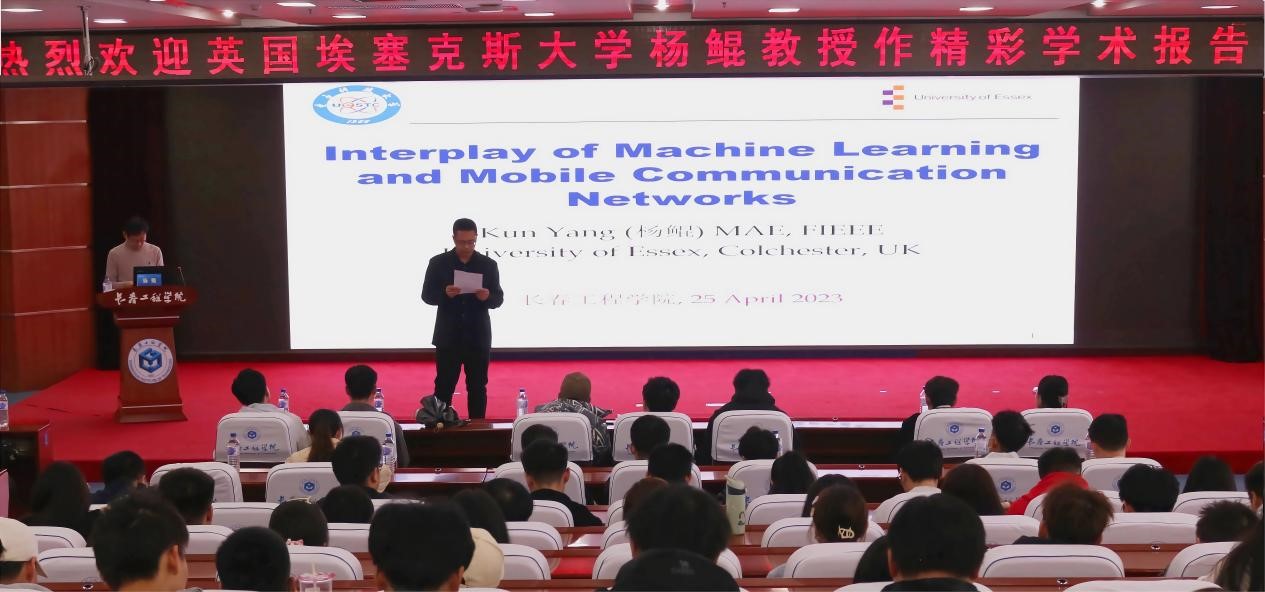 4月25日,英国埃塞克斯大学计算科学和电子工程学院主席教授、欧洲科学院(Academia Europaea)院士MAE,IEEE Fellow, IET Fellow, ACM杰出科学家杨鲲教授在我校逸夫图书馆八楼第三报告厅做了精彩学术报告,大会由计算机技术与工程学院院长孙宏彬主持。