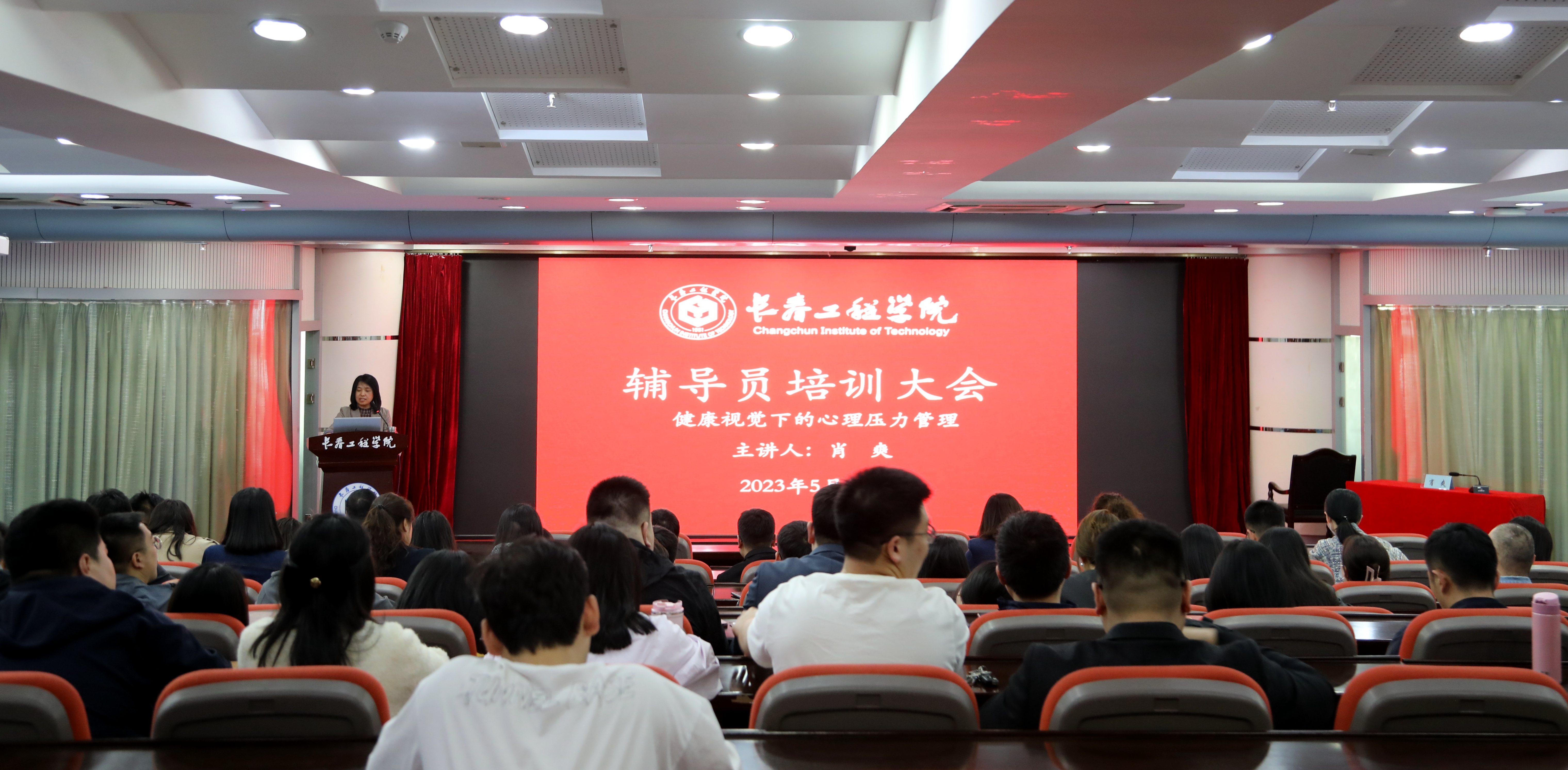 5月10日,环球网_环球(中国)党委学生工作部举办了全体专兼职辅导员培训大会,邀请长春市第六医院心理体检中心主任肖爽作题为《健康视觉下的心理压力管理》的专题培训。此次培训由大学生心理健康教育咨询中心主任张金明主持。