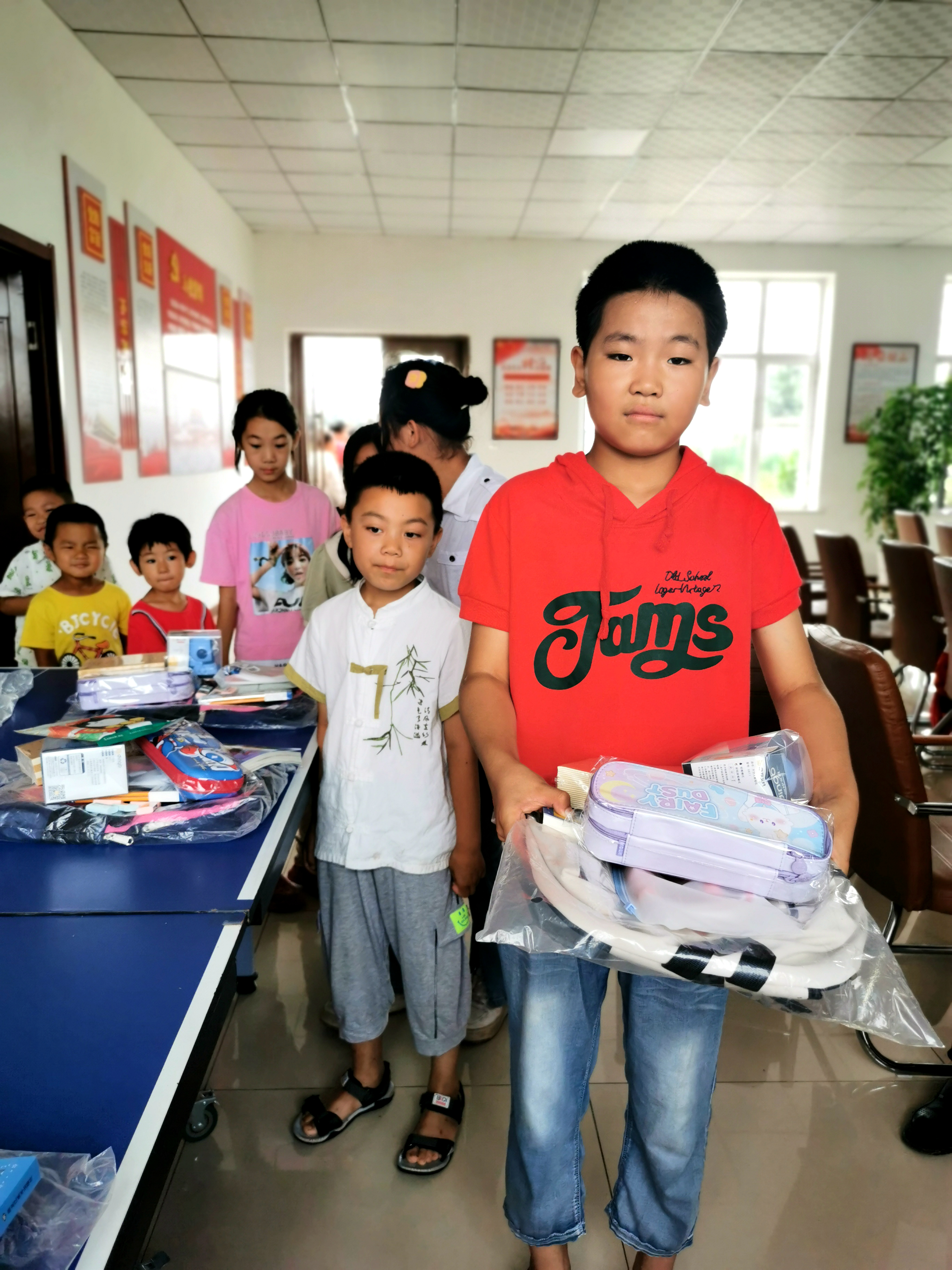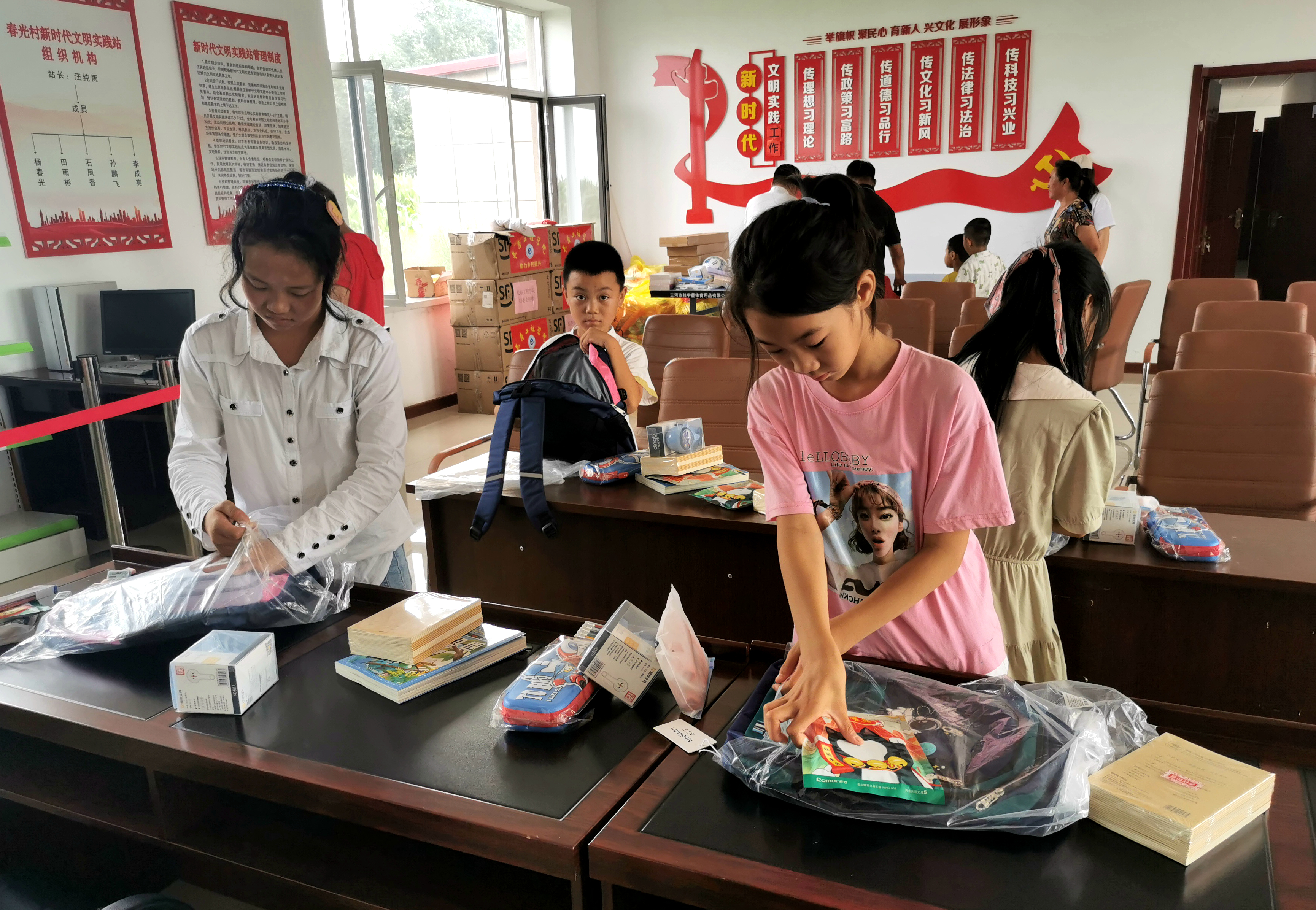 妇委会为包保村的孩子们发放了书包、图书和足球等学习、体育用品,鼓励他们好好学习,以优异的成绩和健康的体魄回报家庭和社会。