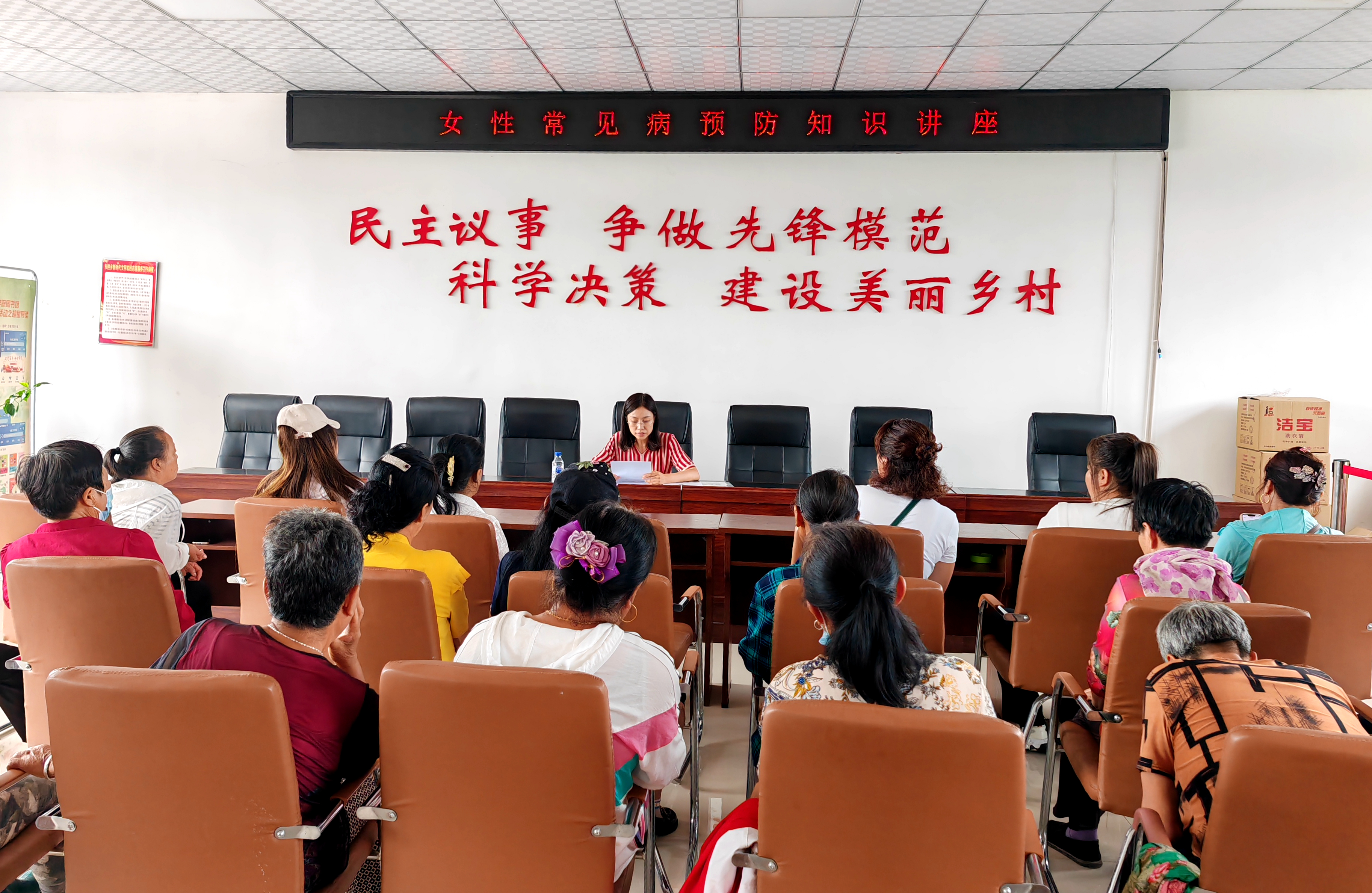 活动中,校医院副院长王姝为包保村的妇女同志们作了题为《女性常见病预防知识》讲座,引导大家提高卫生保健意识。