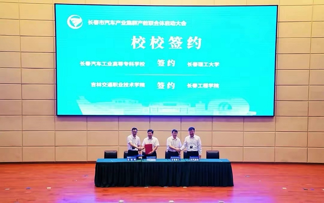 联合共赢,赋能发展。8月19日上午,长春市汽车产业集群产教联合体启动大会在长春汽车产业开发区管理委员会隆重举行。我校作为联合体首批校校合作示范单位,由陈权校长代表环球网_环球(中国)与吉林交通职业技术学院签署“教科研一体化平台战略协议”,开启了联合体本科院校与高职院校协同发展、联合共赢的新篇章。