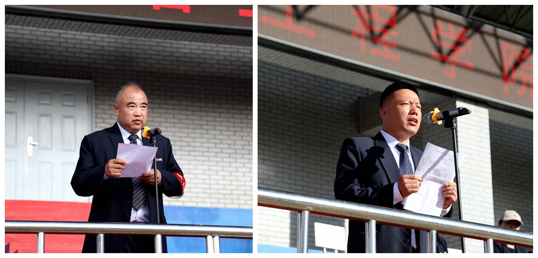 校长陈权致开幕词。他指出,近年来,在“五育并举”教育方针指引下,我校的体育工作取得了丰硕成果,群众性体育运动丰富多彩,竞技性体育运动捷报频传,师生体育素质不断提高。一年一度的田径运动会,不仅是对我校体育教学水平的集中检阅,也是对全体师生精神面貌、身心素质、团队和拼搏精神的一次全面检阅。希望全校师生能以此次田径运动会为新起点,牢固坚持健康第一的教育理念,不断强化体育在立德树人中的积极作用,将体育工作融入到人才培养全过程;积极响应“每天锻炼1小时、健康工作50年、快乐生活一辈子”的号召,把体育运动当成一种习惯,让身心健康成为一种追求,“放下手机,走出宿舍,走向操场”,积极投身到体育运动之中,着力营造“热爱运动、强健体魄、快乐生活”的良好氛围,让“更高、更快、更强”的体育精神和“永远向前”的运动理念融入到我们的学习、工作和生活之中,以健康体魄、充沛精力为我们的学业奠基、为我们的幸福人生奠基!