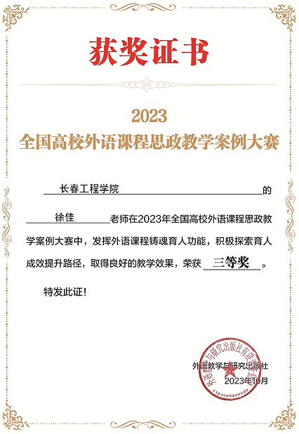 我院参赛教师按照大赛评审标准积极备赛,深入挖掘了教学材料中的思政元素,有机融入党的二十大精神;各环节思政教学设计均紧密围绕思政育人目标,体现学生主体地位,启发学生在外语学习中提升政治认同、家国情怀、文化素养与道德修养。参赛案例注重提升学生尊重多元文化、传播中国声音的使命感,让学生主动肩负起“讲好中国故事”的时代责任,以实现春风化雨、润物无声的育人效果。