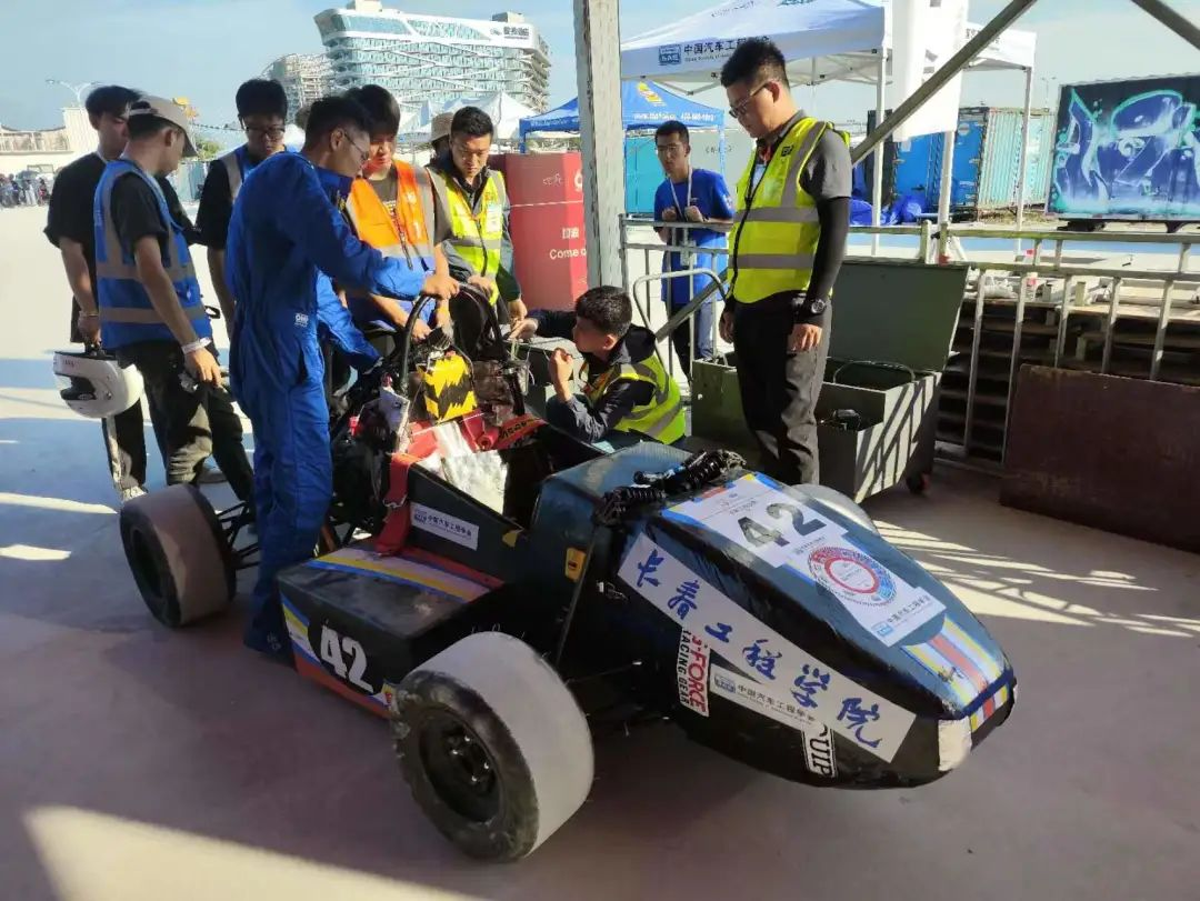 在历时五天的赛程中,参赛车队需接受技术检查、成本制造与分析、营销和设计、直线加速、8字绕环、高速避障、耐久测试与效率测试等综合测评。我校“元征车队”精心准备、全力投入,按要求高质量完成了全部静态赛的测试项目。