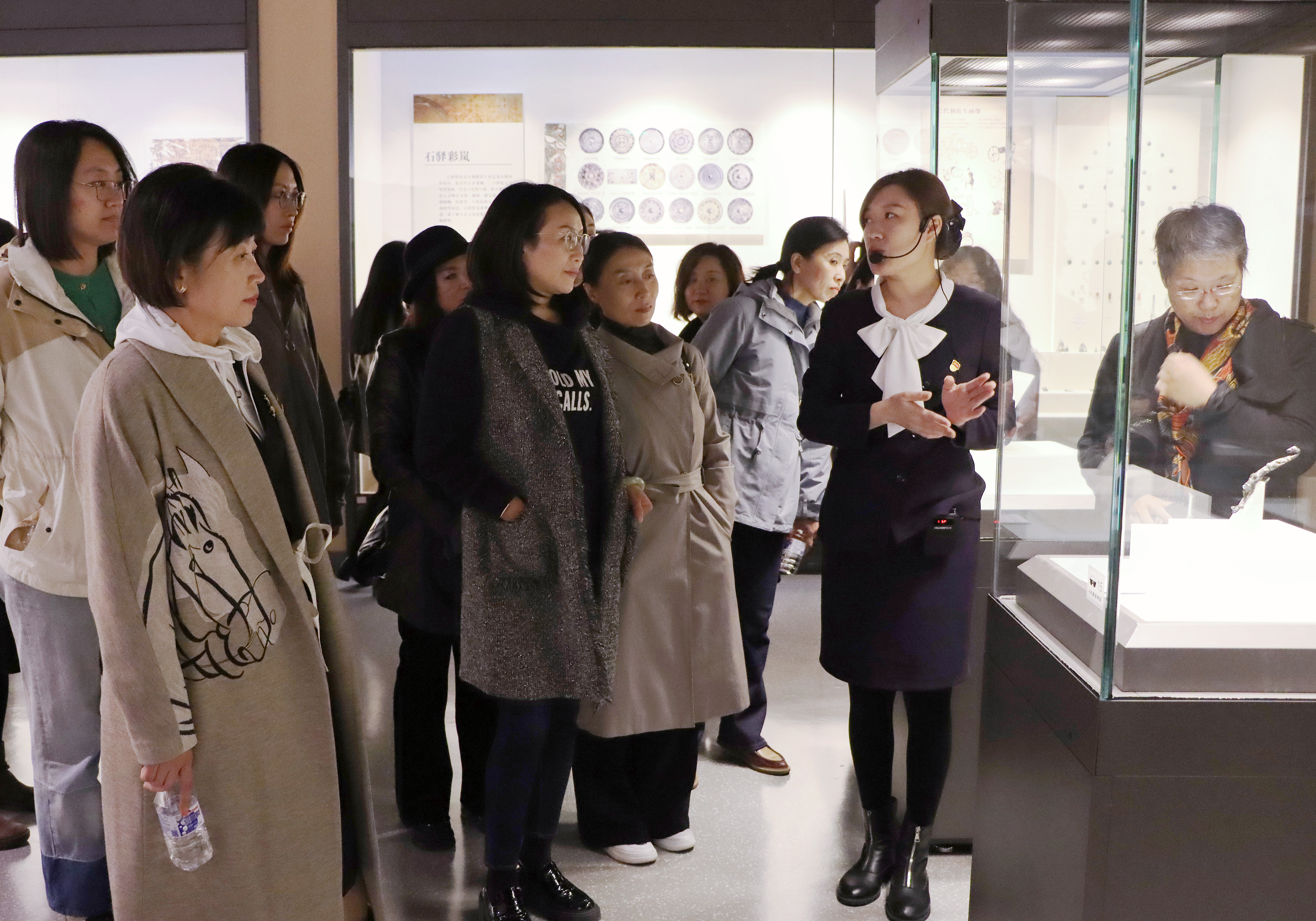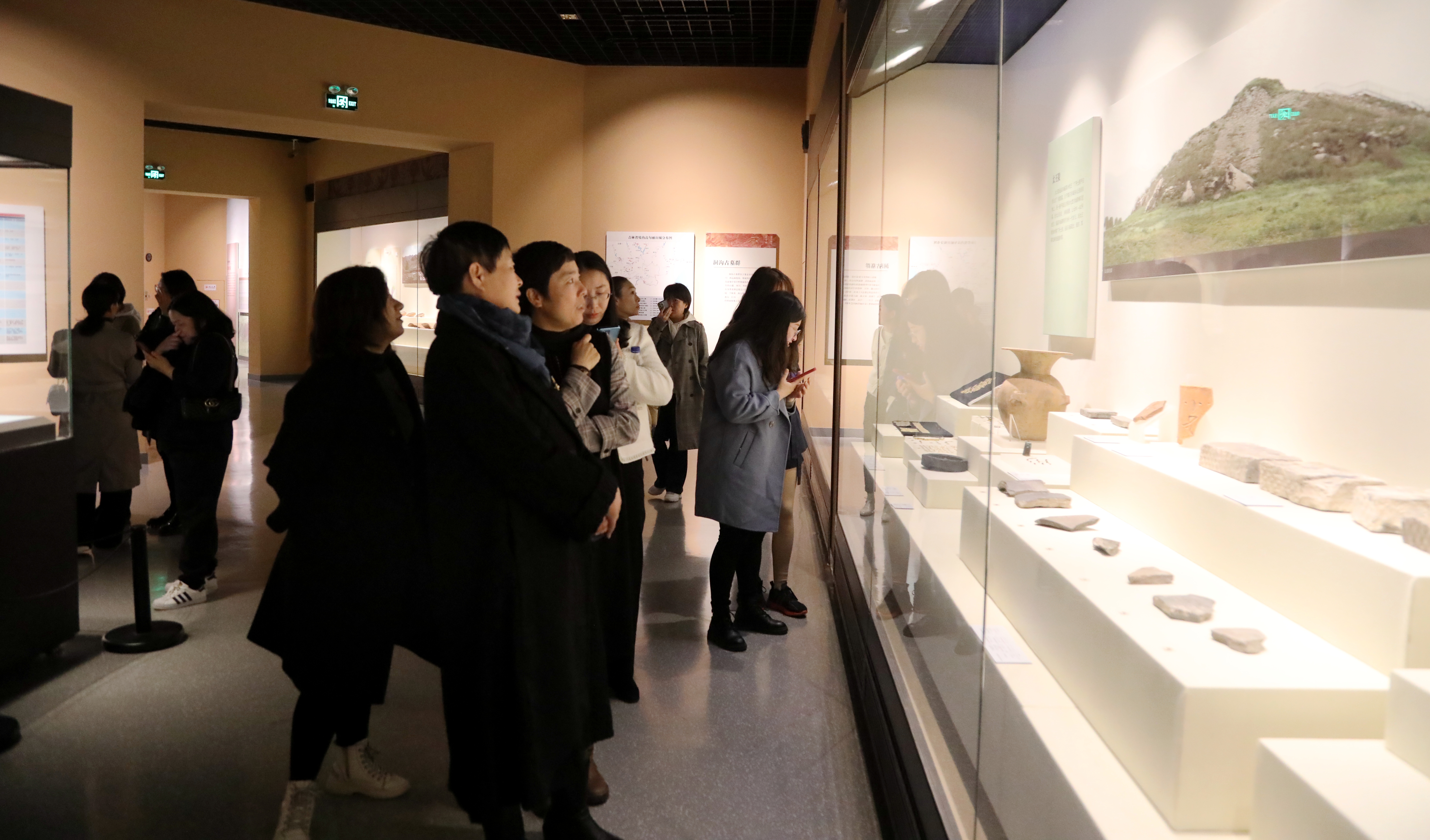 女教师们参观了“白山松水的记忆——吉林省博物院历史文化陈列”,该展览是反映吉林地域历史文化的一部大型通史陈列,分为文明曙光、汉唐古韵、松漠雄风、明清华章四个部分,生动地展现了自有人类活动以来,吉林省的沧桑历史与变迁,反映了边疆各族人民不断的交流融合,共同创造中华民族文化的恢宏历史进程。