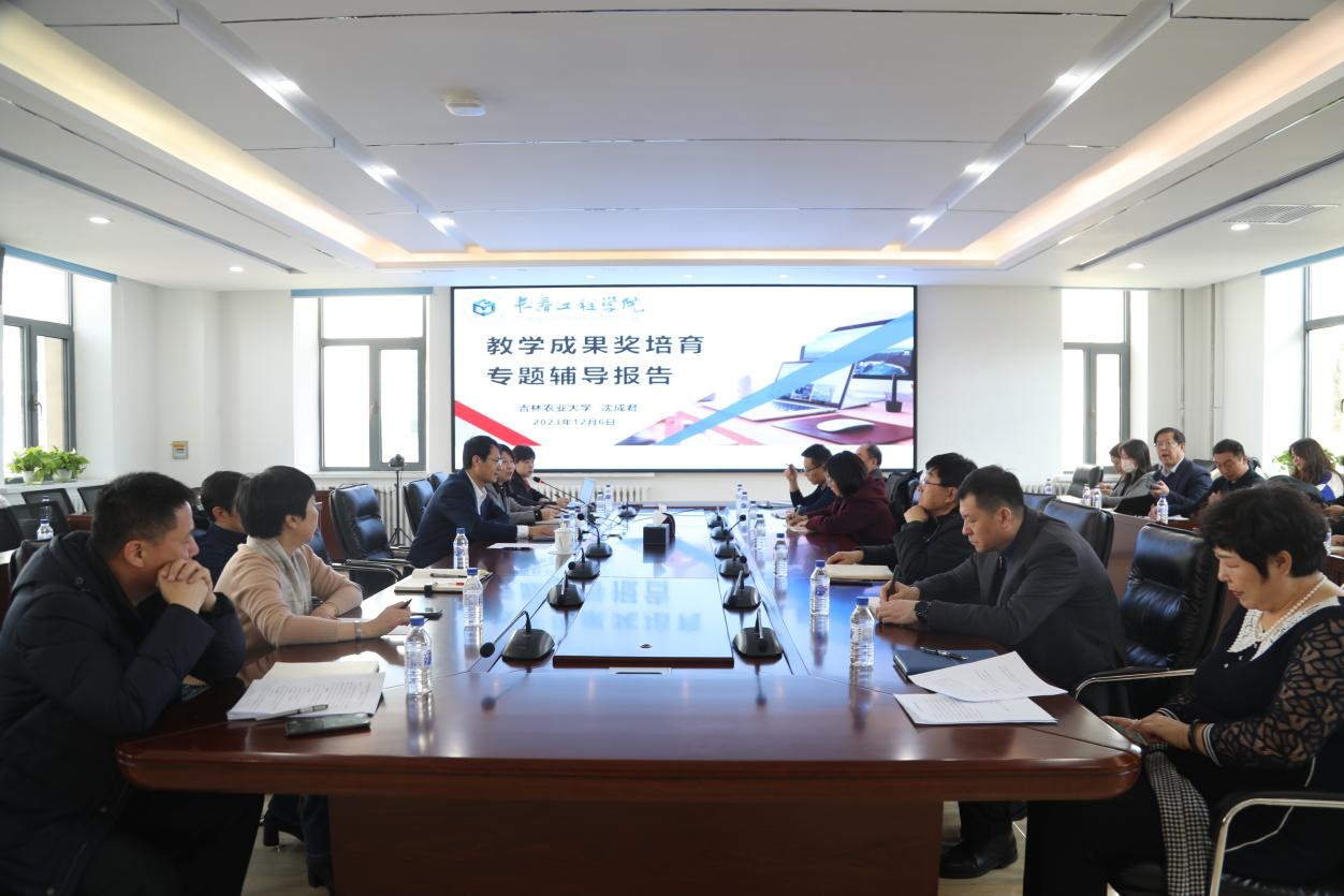 为进一步深化教育教学改革,总结我校教学改革与研究实践经验,提升教学成果凝练质量,12月6日,环球网_环球(中国)邀请吉林农业大学教务处处长沈成君教授作教学成果奖培育专题辅导报告。报告会由教务处处长王文华主持。