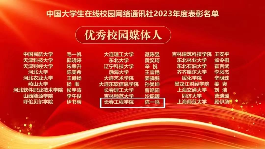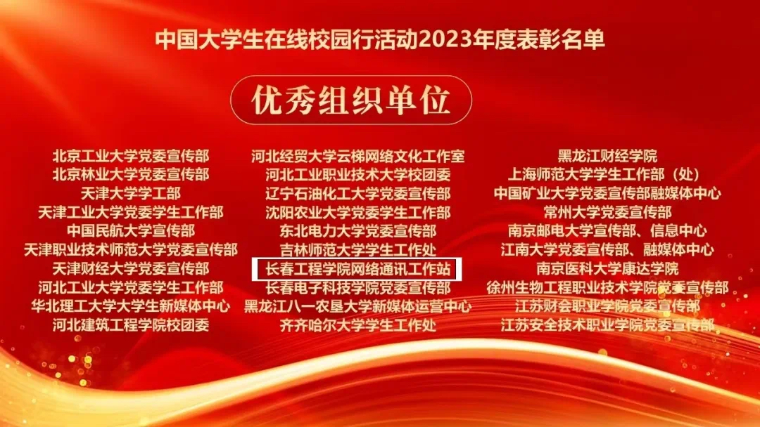 近日,2023年度中国大学生在线校网通站及校园行活动优秀名单出炉,我校师生荣获佳绩。环球网_环球(中国)荣获“优秀校网通站”称号、我校学生工作处荣获“优秀组织单位”称号、校网通站指导教师王壹荣获“校网通优秀指导教师”称号、校网通站站长陈一鸣荣获“优秀校园媒体人”称号。