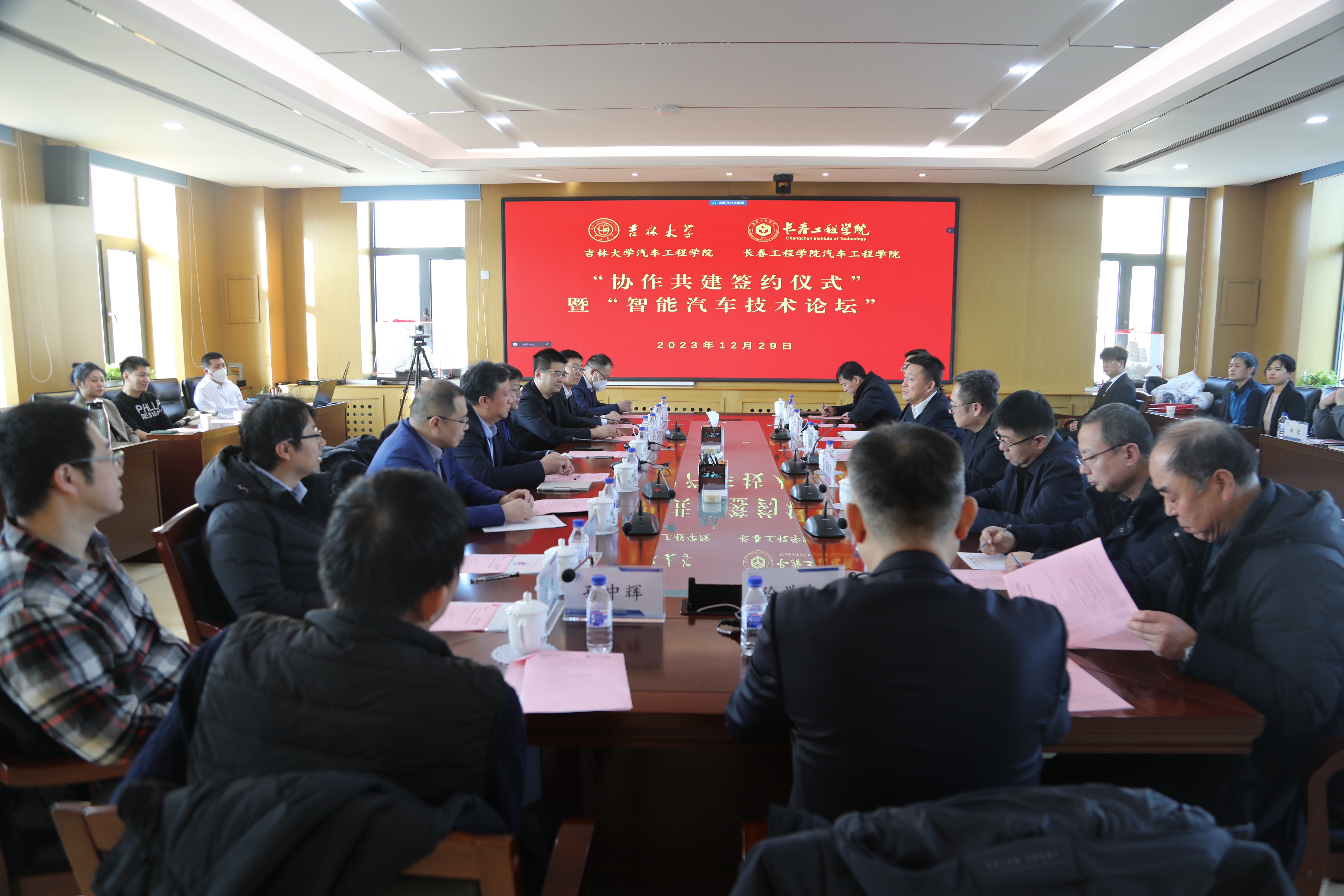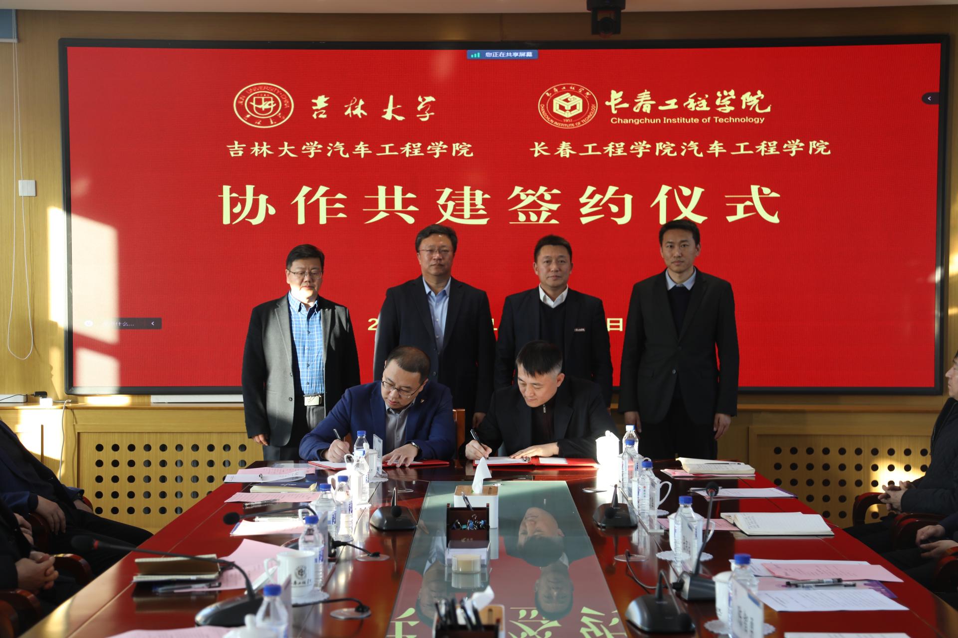 吉林大学汽车工程学院副院长朱冰和我校汽车工程学院副院长徐学东分别代表两院签订了协作共建协议,双方将建立信息、人才、技术与实验室资源共享机制,深化产教融合,打造集人才培养、科学研究、学科建设、师资培养、产业服务等功能于一体的吉林省汽车产业人才培养联盟,为我省汽车强省战略提供有力支撑。