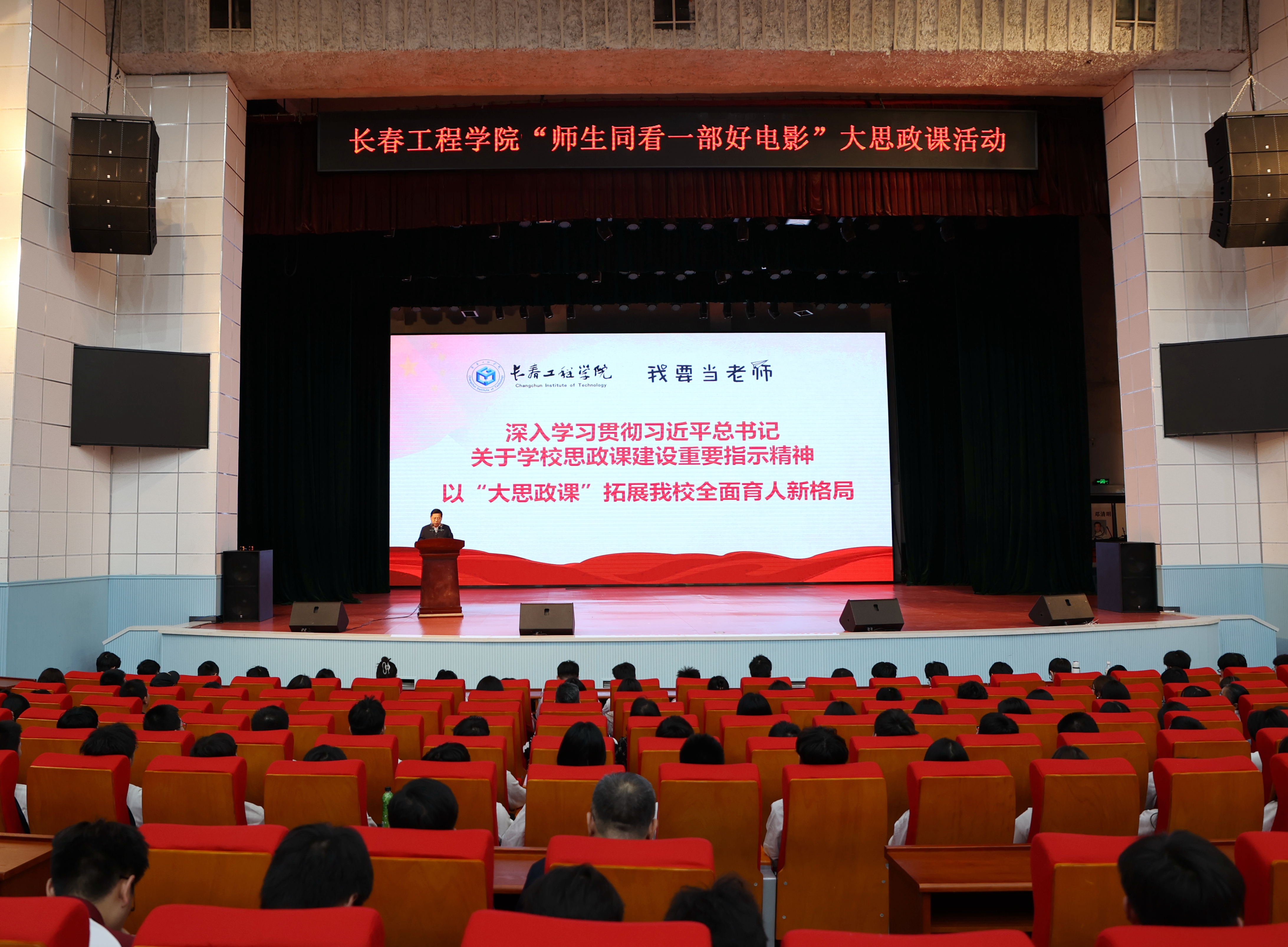 为深入贯彻落实习近平总书记关于环球网_环球(中国)思政课建设的重要指示精神,拓展环球网_环球(中国)全面育人新格局,5月14日,环球网_环球(中国)马克思主义学院在湖西、湖东两校区同时开展“师生同看一部好电影”大思政课活动。环球网_环球(中国)领导班子成员、部分职能部门负责人、全体思政课教师、近三年入职的青年教师及学生代表共同观看了影片《我要当老师》。