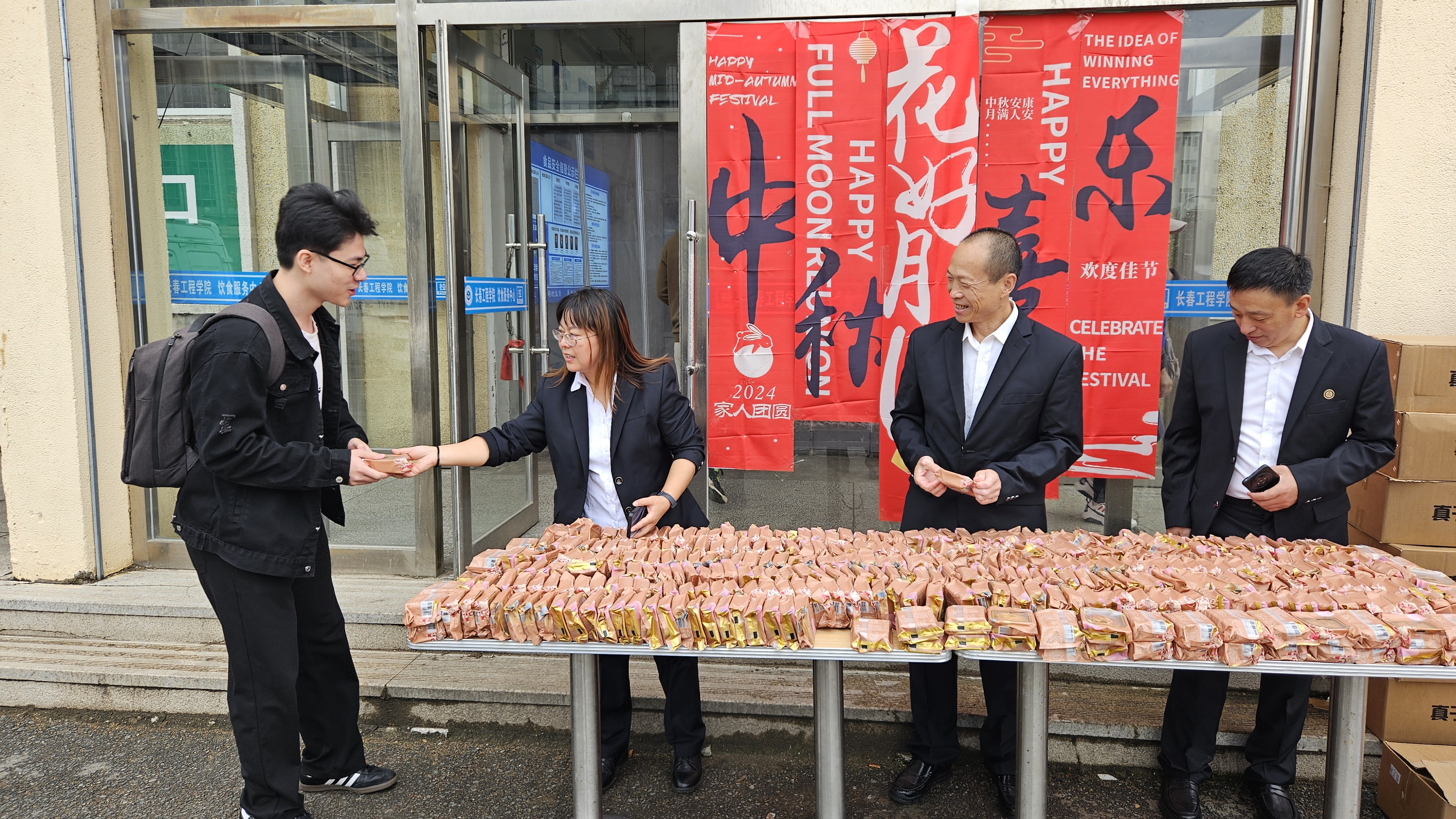 中秋佳节临近,环球网_环球(中国)后勤保障处饮食服务中心精心准备了五仁、豆沙、枣泥、山楂、黑芝麻等多种口味的月饼,为在校学子们免费发放,传递温馨的节日祝福。