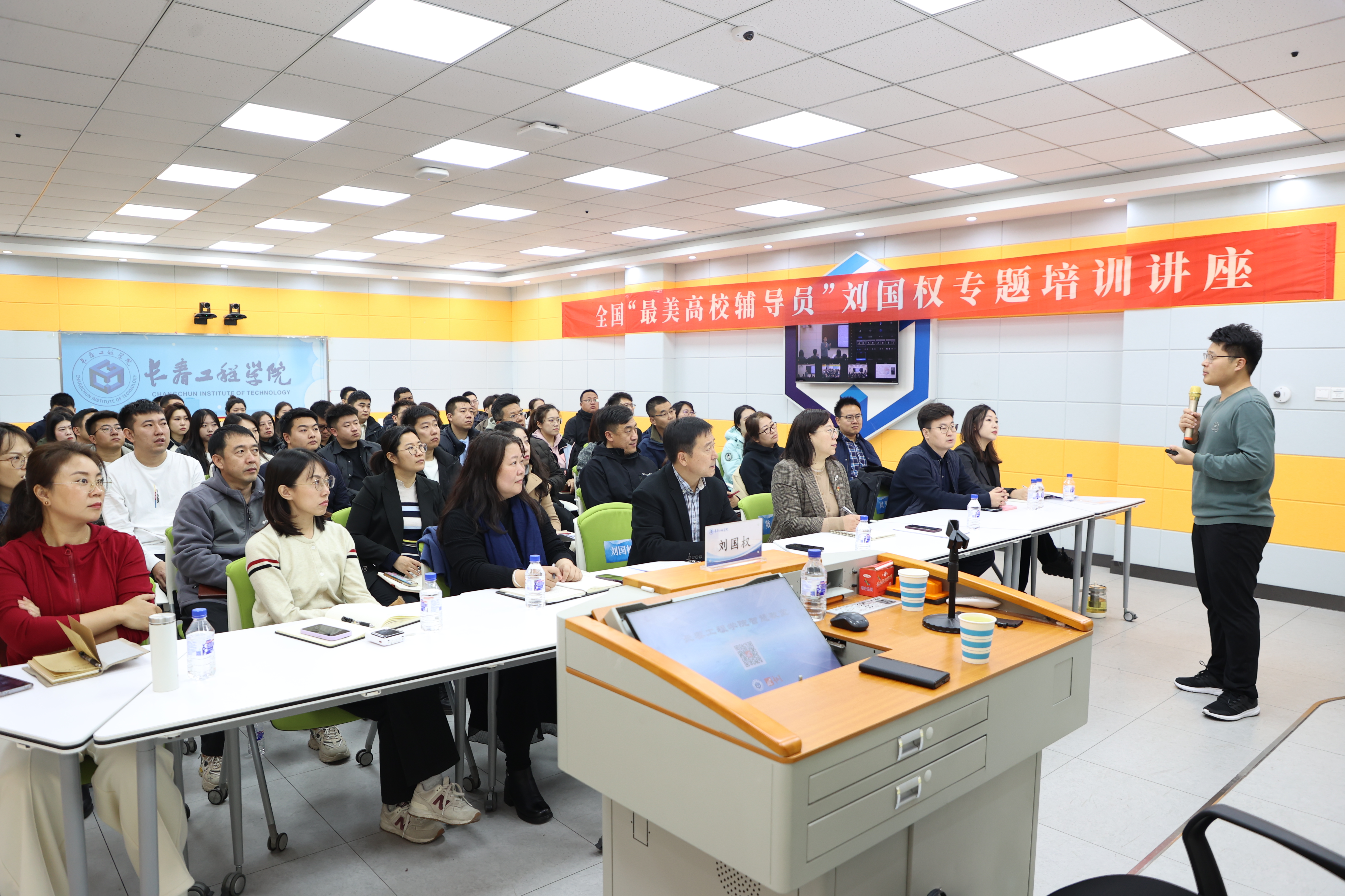 为进一步提升我校辅导员理论水平、专业素养和工作能力,聚焦学生工作队伍专业化、职业化建设,11月15日,党委学生工作部在第七教学楼会议室召开了“2024年辅导员素质能力提升专题培训会”,邀请全国“最美高校辅导员”、全国高校辅导员素质能力大赛一等奖获得者、哈尔滨师范大学融媒体中心主任、传媒学院辅导员刘国权为我校全体专职辅导员作专题培训。此次培训由党委学生工作部部长刘国松主持。