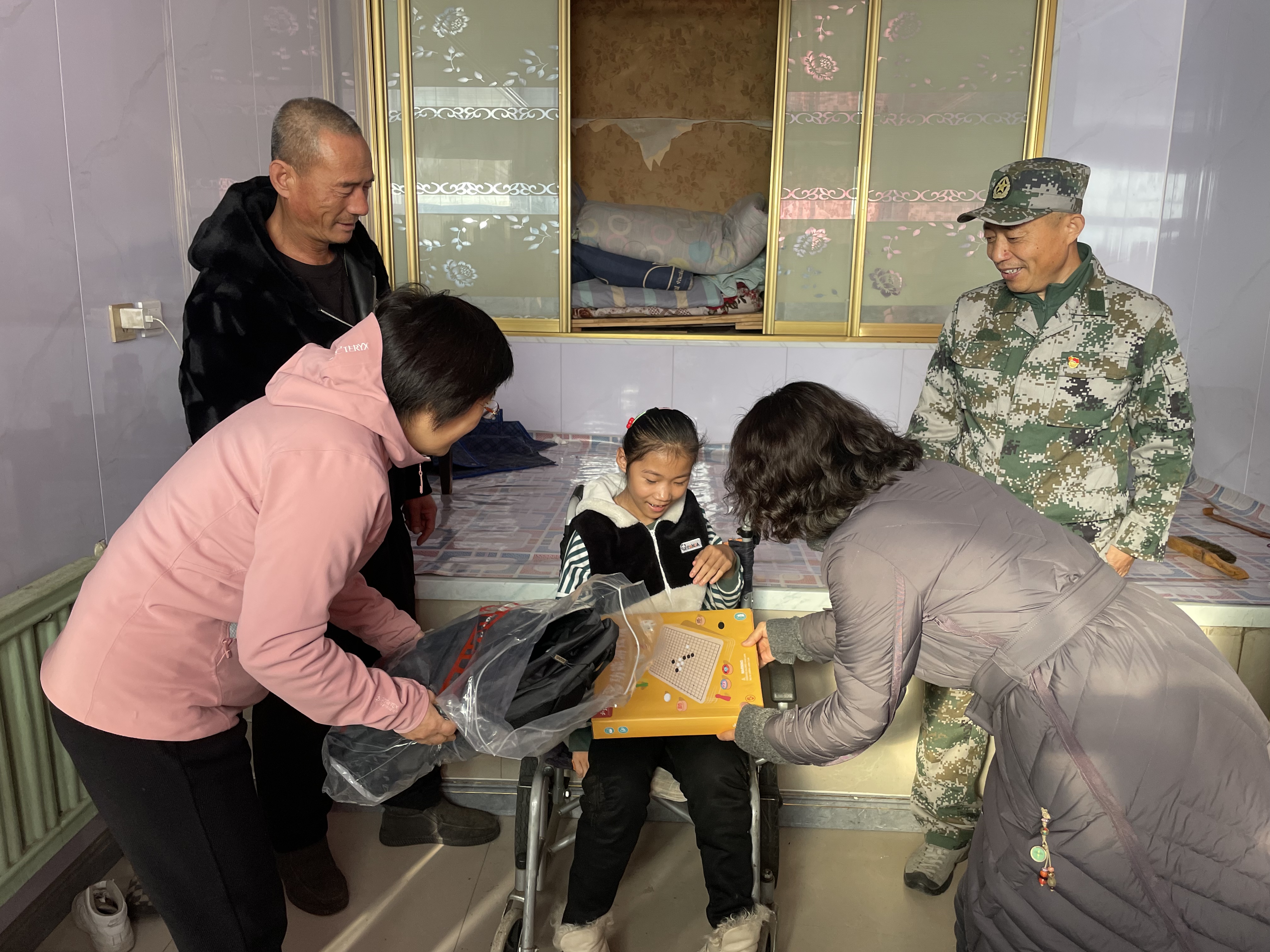 志愿服务团队为包保村的孩子们准备了学习用品、益智玩具、手套帽子袜子等保暖物品,在寒冷的冬日为孩子们送上开心和快乐。
