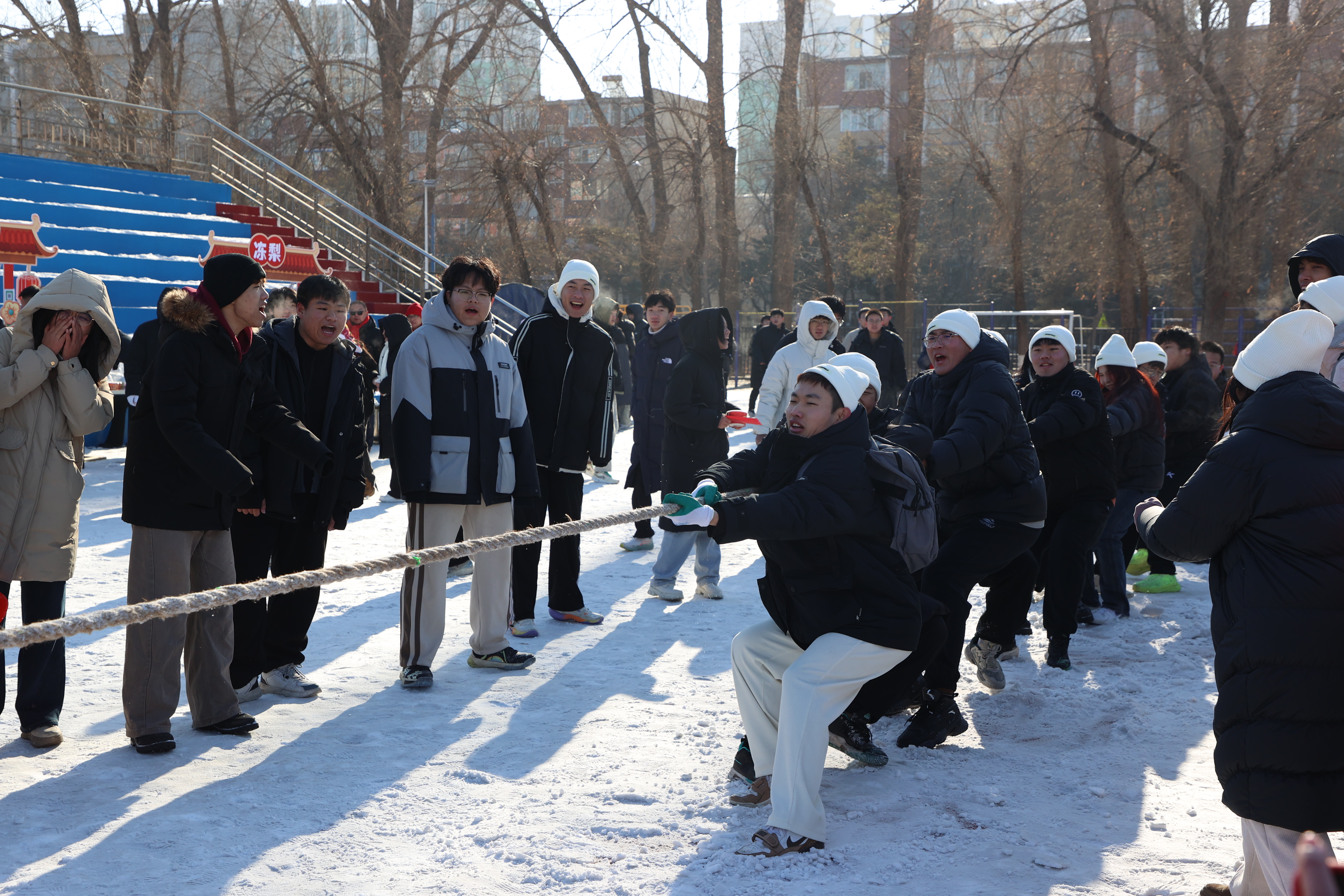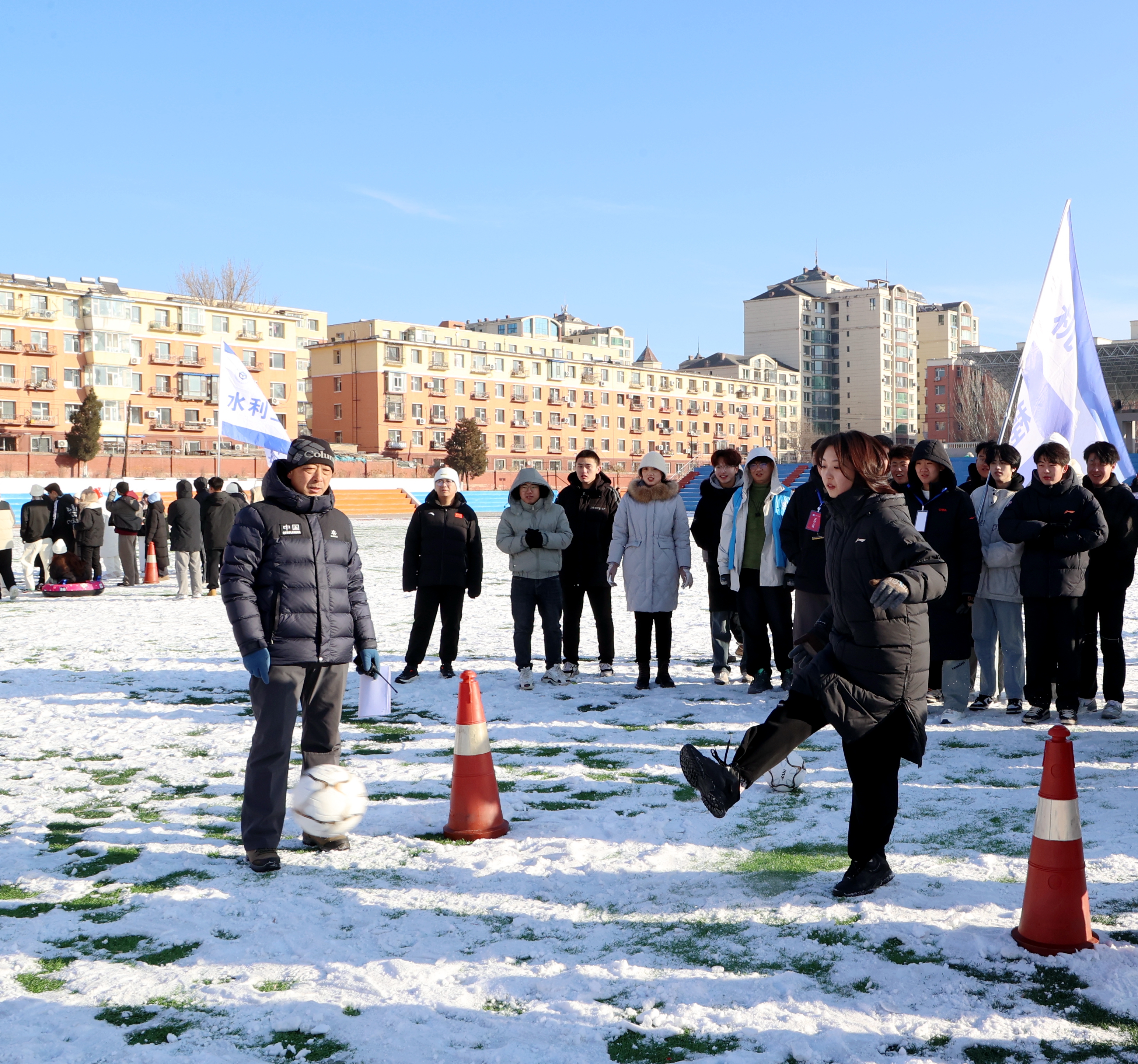 此次运动会共有雪圈竞速、毛毛虫竞速、运转乾坤、财源滚滚、足球踢准、八仙过海、雪地拔河七个项目。