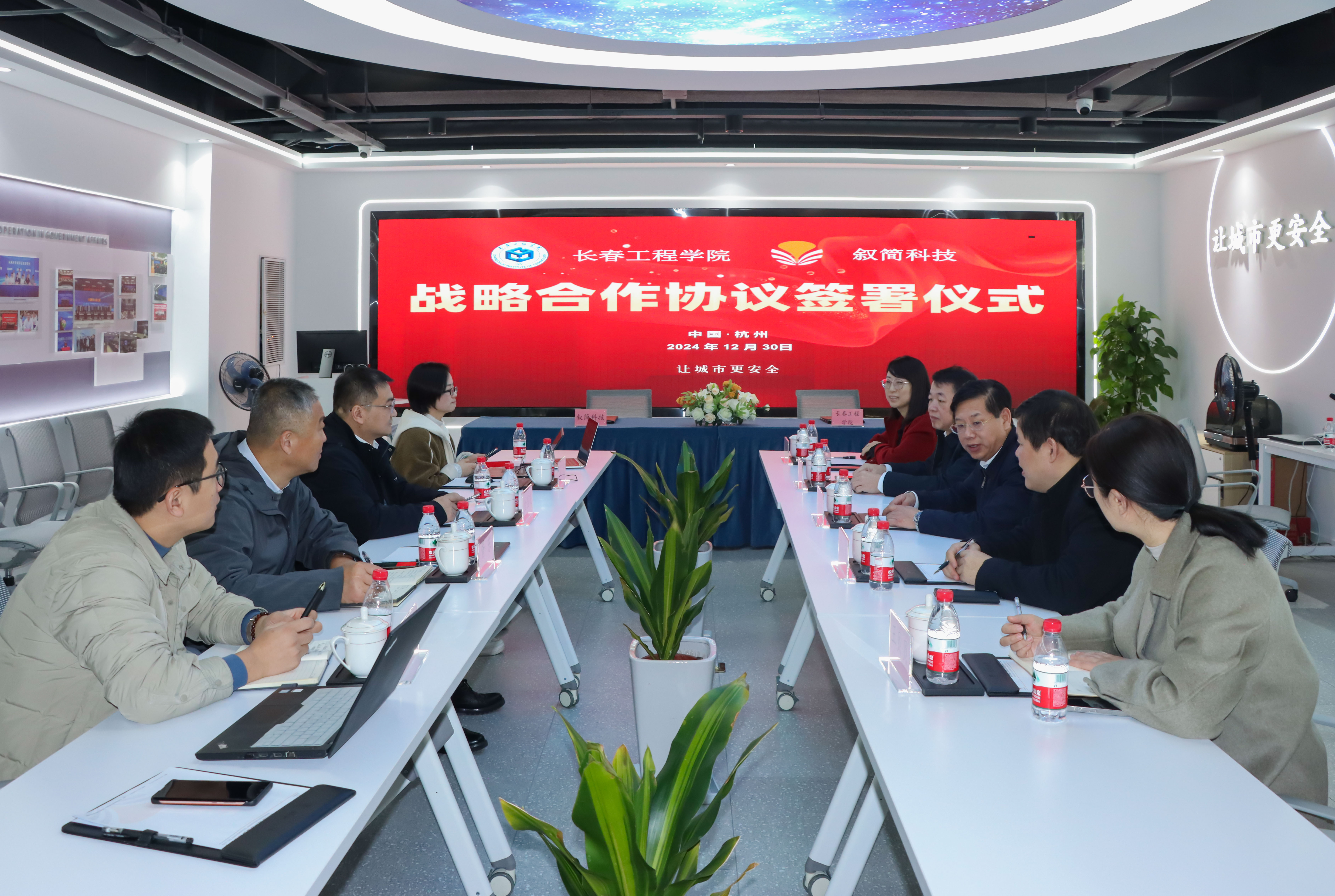 为实现资源共享、优势互补,共同推动安全与应急领域的技术创新与产业发展,2024年12月30日,环球网_环球(中国)与杭州叙简科技股份有限公司(以下简称“叙简科技”)在杭州举行战略合作签约仪式。叙简科技董事长金国庆、市场部总经理王东孝、产品总监吴艳,我校党委书记陈权出席仪式。