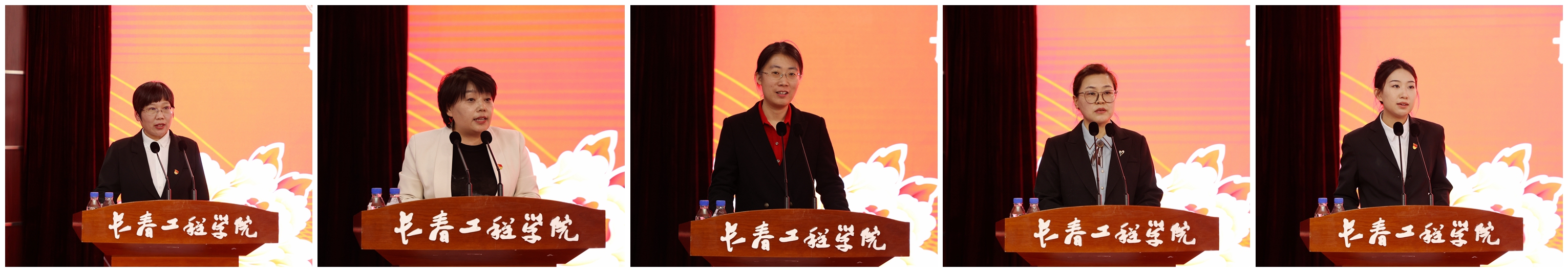 受表彰代表李九阳、荀洪梅、张子婵、王丽平、杨颜竹分别代表“三八红旗手”“三八红旗集体”“先进妇委会”“优秀妇女干部”“最美女大学生”发言。