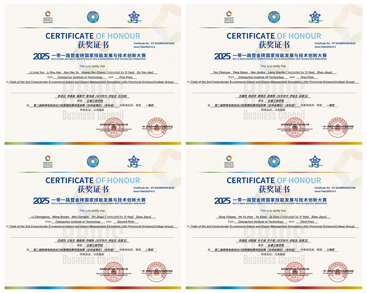 近日,2025一带一路暨金砖国家技能发展与技术创新大赛第二届跨境电商进出口经营模拟赛项吉林省获奖名单揭晓。由我校计算机技术与工程学院教师伊延吉、大学生创新创业教育学院教师杜月娇、国际交流处教师赵家玉指导的4支参赛队伍表现优异,斩获吉林省本科组一等奖2项、二等奖1项、三等奖1项。其中,由李凌云同学带领的参赛队伍成功晋级国赛。