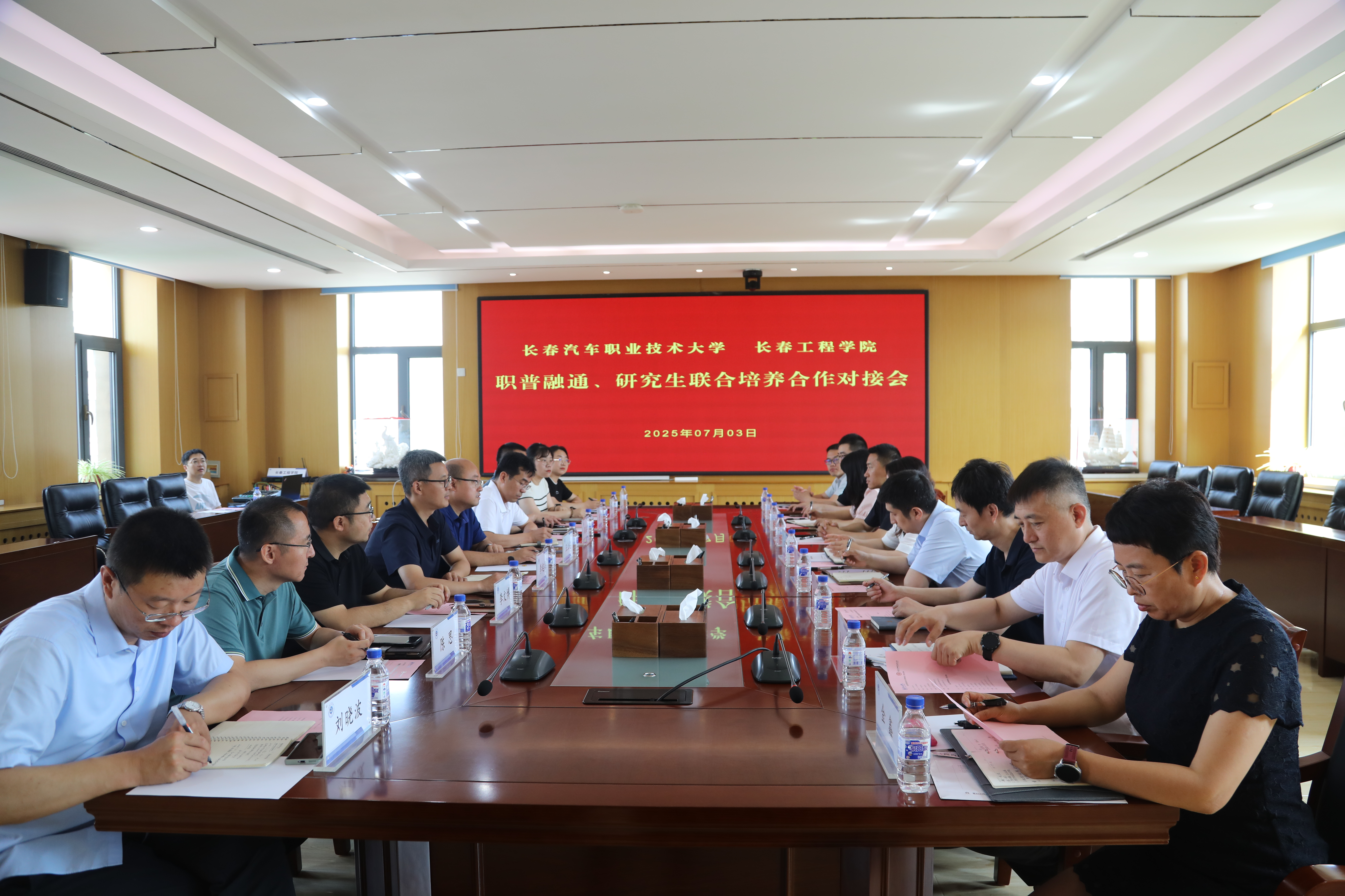 为深入贯彻吉林省教育厅职业院校与普通高校融合发展的战略部署,7月3日,长春汽车职业技术大学一行来我校就职普融通、协同发展举行对接会。副校长张邦成会见来访人员,并强调了应聚焦资源共享、优势互补、协同创新,加快“专业建设、课程衔接、资源共享”落地实施。