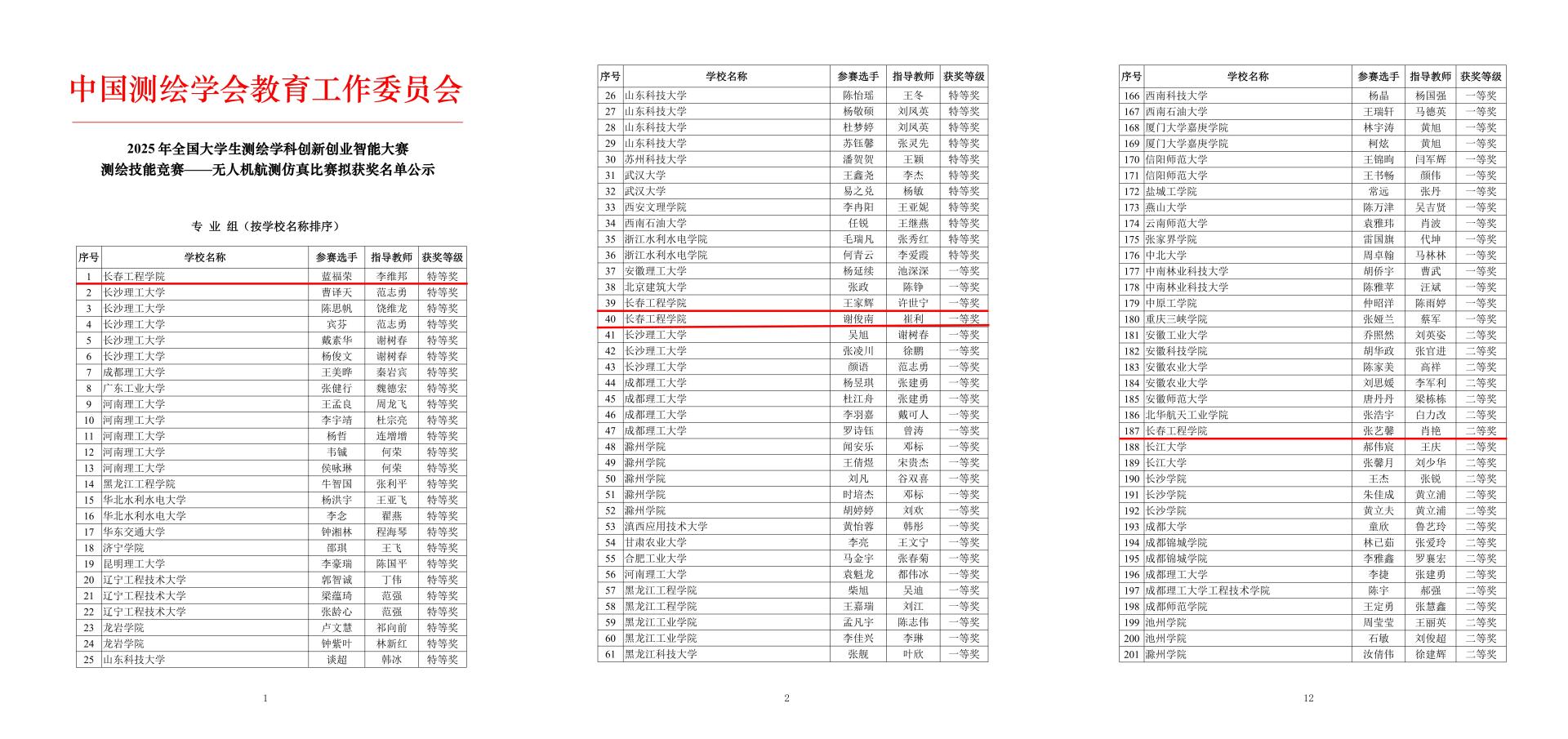 近日,由中国测绘学会教育工作委员会主办、内蒙古科技大学承办、广州南方测绘科技股份有限公司协办的2025年全国大学生测绘学科创新创业智能大赛在包头市举行,我校勘查与测绘工程学院学生斩获特等奖1项、一等奖2项、二等奖2项。