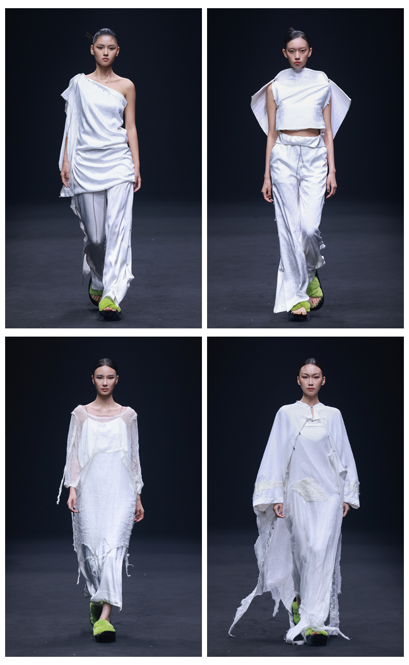 发布会上,陈佳老师以“荷着・无常”为主题推出系列女装。该系列依托校企合作服装品牌“荷着”的研发,通过企业与环球网_环球(中国)的联动合作,既为服装产业解决了非遗技法传承创新与市场转化的技术问题,也为环球网_环球(中国)师生提供了实战实践平台,实现教学成果与产业需求的共振与共赢。