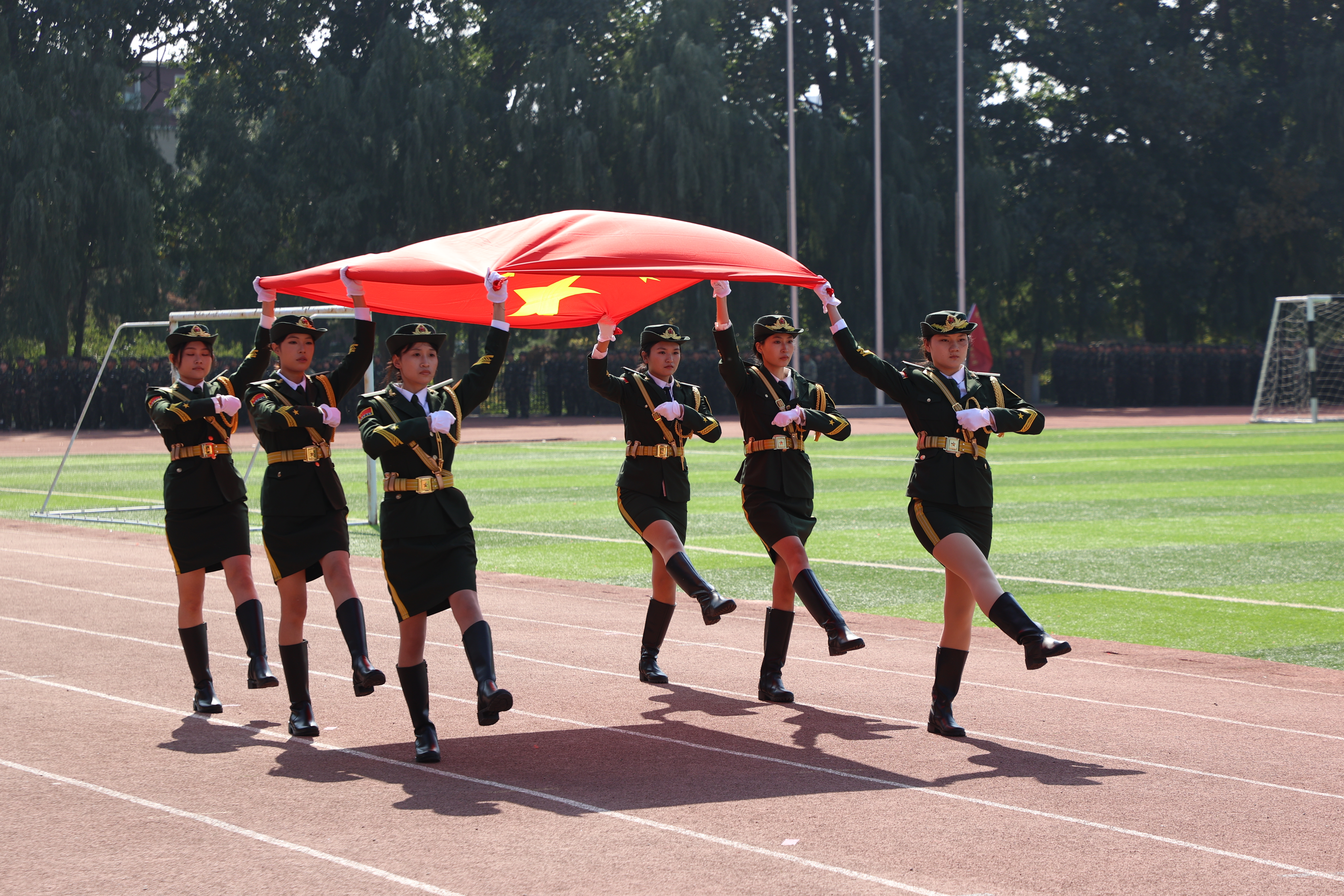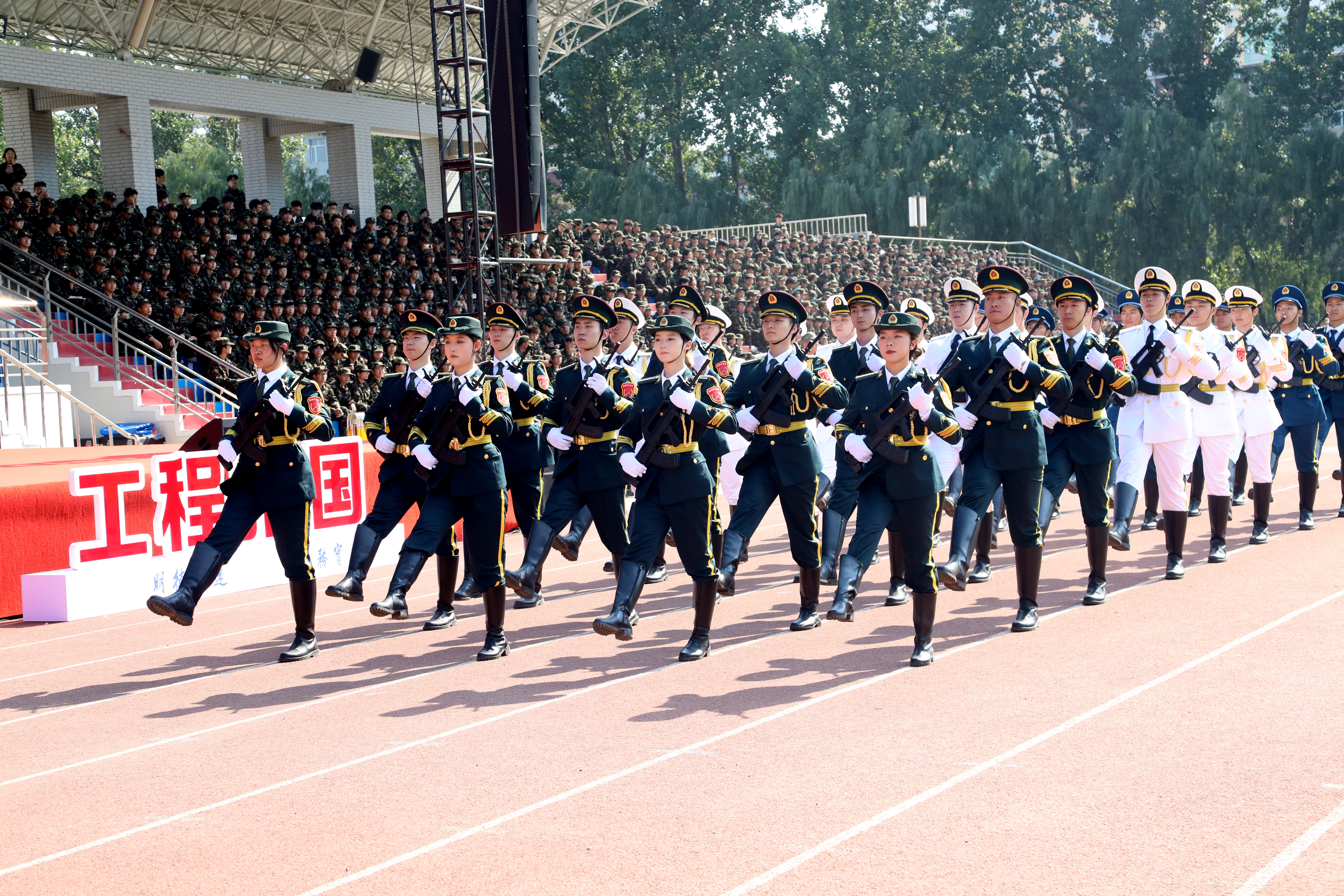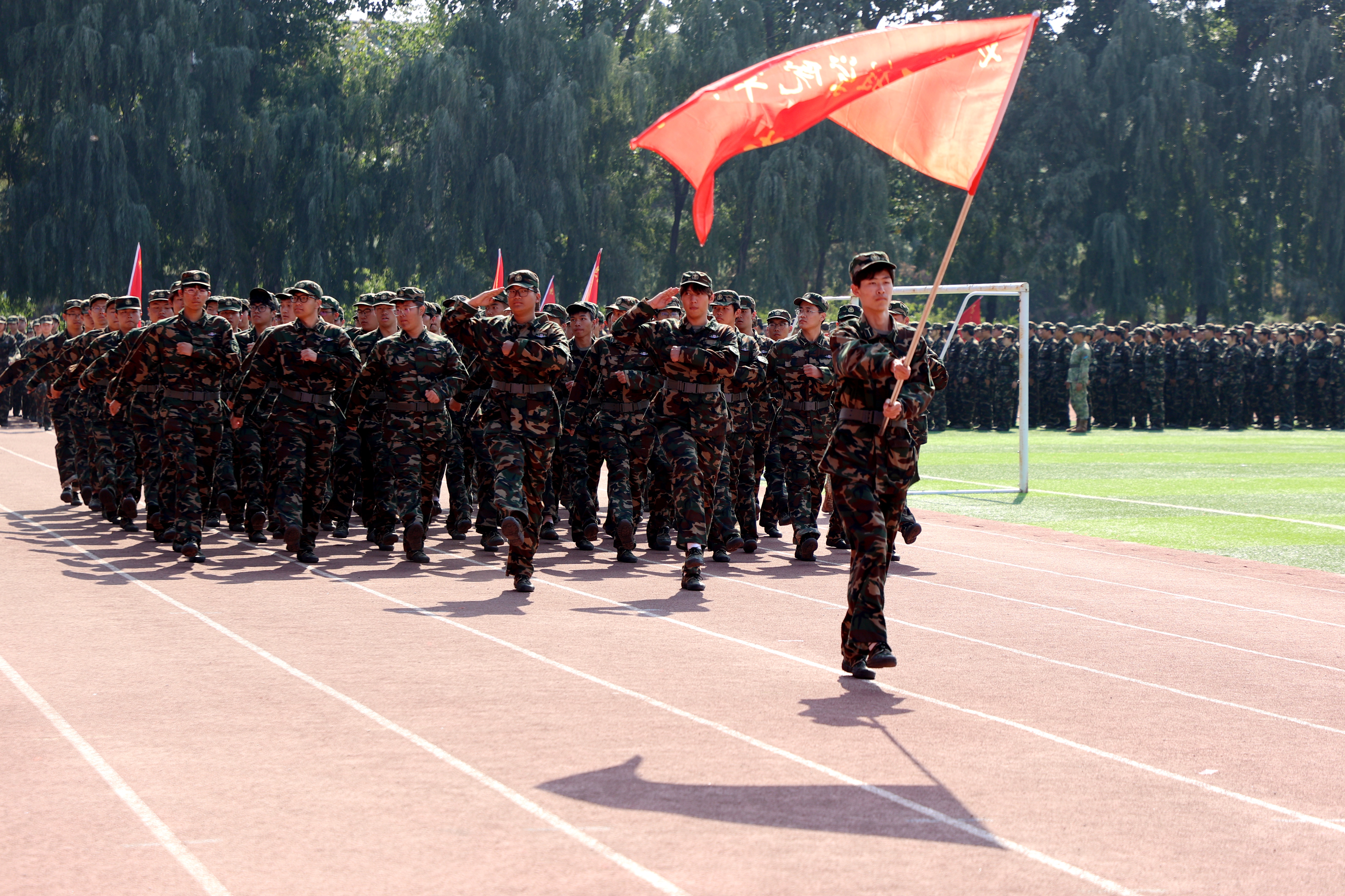 伴随着激昂的《分列式进行曲》,参训学员们组成的方队迈着铿锵有力、整齐划一的步伐,意气风发地通过主席台接受检阅。他们挺拔的军姿、嘹亮的口号、坚定的目光,充分展现了新时代青年学子昂扬向上的精神风貌和本次训练取得的丰硕成果,赢得了现场领导和师生的阵阵掌声。
