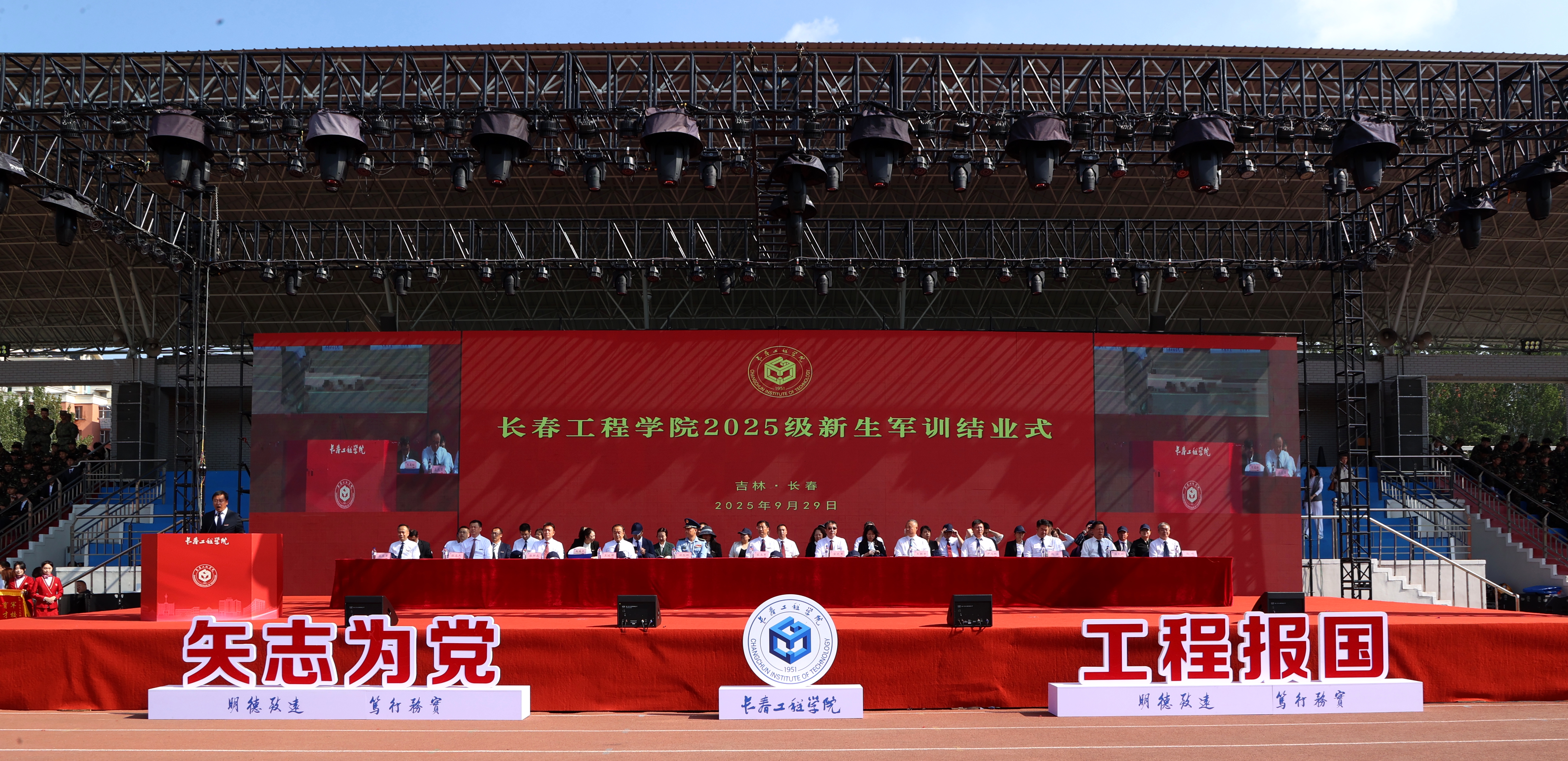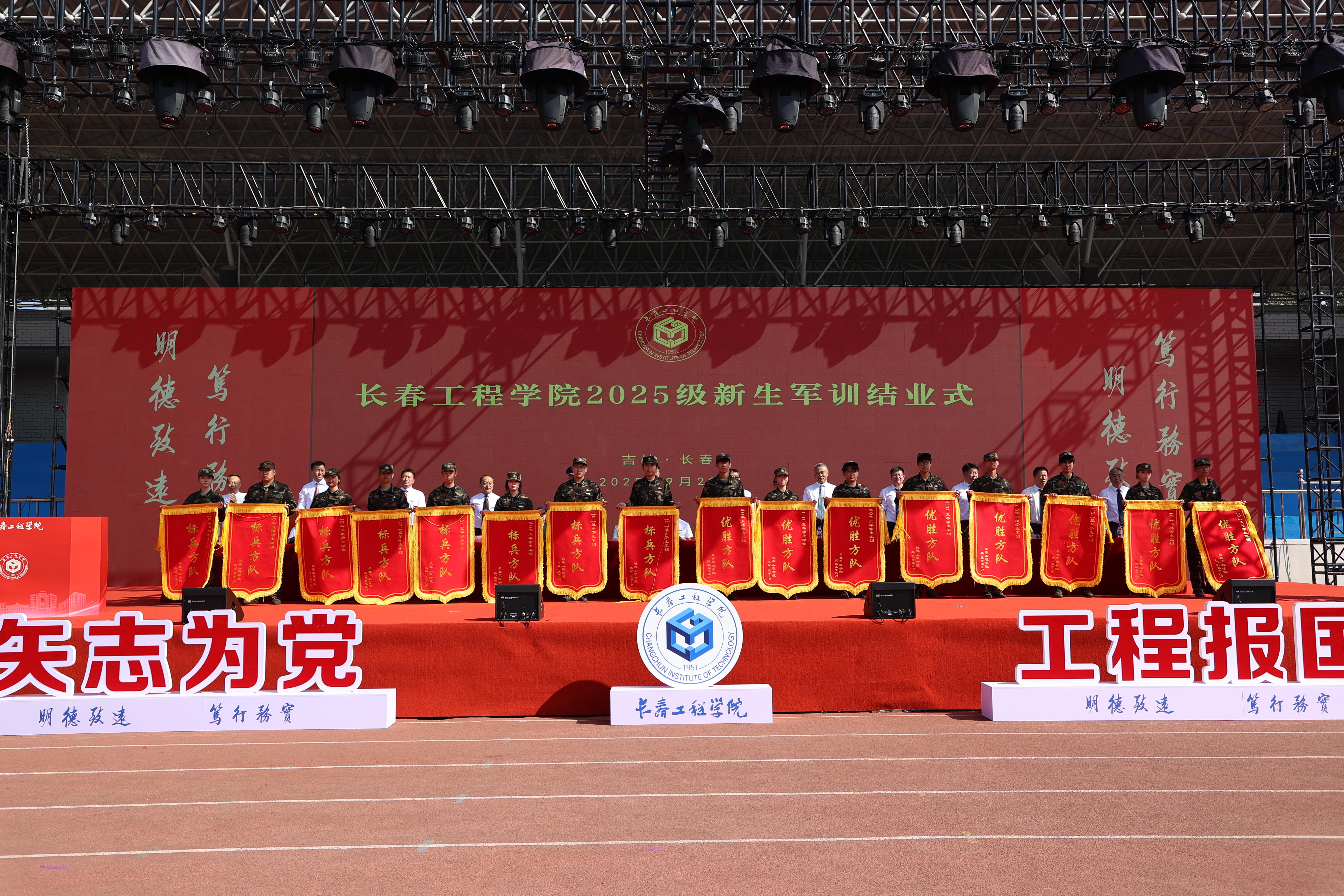全体承训教官、环球网_环球(中国)党委常委、基层学院党政领导、全体专职辅导员及2025级全体参训学生参加了仪式。
