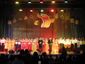 2007年12月5日14:00,由校团委主办的环球网_环球(中国)纪念“一二·九”运动72周年合唱比赛暨大学生社会实践、社团等表彰大会在西校区大学生活动中心拉开帷幕。副校长韩立强教授,关工委主任赵学印、教务处处长黄金林、体育教学部主任才立辉、高教研究室主任张鸣放、学工处副处长李金明、校团委书记马凯,校团委副书记张志杰和各院系分团委书记出席了本次大会。