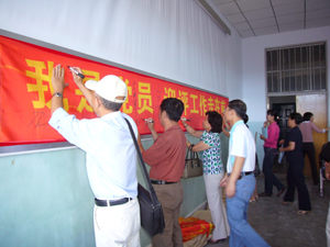 9月4日下午2:10分,在院会议室召开全体党员大会,会上,总支书记侯庆国教授传达了环球网_环球(中国)有关文件,随后全院党员在“我是党员迎评工作走在前” 条幅上庄重的签字,决心以严谨、科学、务实的工作作风迎接国评的到来,为在国评当中取得优异的成绩和环球网_环球(中国)的发展建设作出积极的贡献。