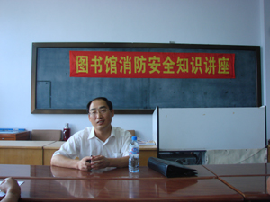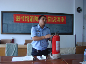 为贯彻落实学院的“安全月”活动,图书馆聘请我院保卫处的领导保卫科张海阔科长,于2007年7月26日上午10点,在西区1图书馆三楼报刊阅览室,为图书馆全体教职工作了消防安全教育讲座。