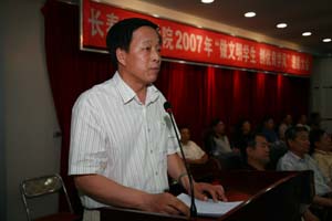 6月28日下午二点,我院在七教13楼会议室隆重举行了2007年“做文明大学生,创优良学风”表彰大会。院党委书记李春生、院长石曙光、副院长韩立强、纪委书记王时刚、副院长任玉珊、司元英、党委副书记吴占军、关工委主任赵学印、学生工作处处长池顺勇、就业指导中心主任兼学生工作处副处长杨树国以及各院系党总支副书记出席大会并在主席台就坐。学生工作处副处长李金明主持大会。