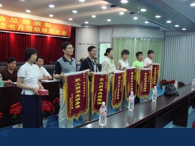 2007年6月13日下午,在学院13楼会议室隆重召开了捐书活动总结表彰暨图书馆第二届读书月活动动员大会。石曙光院长、韩立强副院长、任玉珊副院长、工会主席王英石、团委书记马凯以及图书馆张治江馆长、教辅联合党总支徐国杰书记、张萍副馆长等到会,各学院分团委书记亲自带队,组织本学院部分学生参加了此次大会。