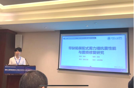 我校结构工程方向2022级研究生杨帆以“带缺陷装配式剪力墙抗震性能与震损修复研究”为主题在论坛上做了主题报告,介绍了课题组近些年来围绕装配式建筑结构技术开展的相关研究工作,主要内容包括带缺陷灌浆套筒连接件受力性能研究、带灌浆套筒连接缺陷的装配式剪力墙抗震性能研究和修复震损装配式剪力墙抗震性能研究等。