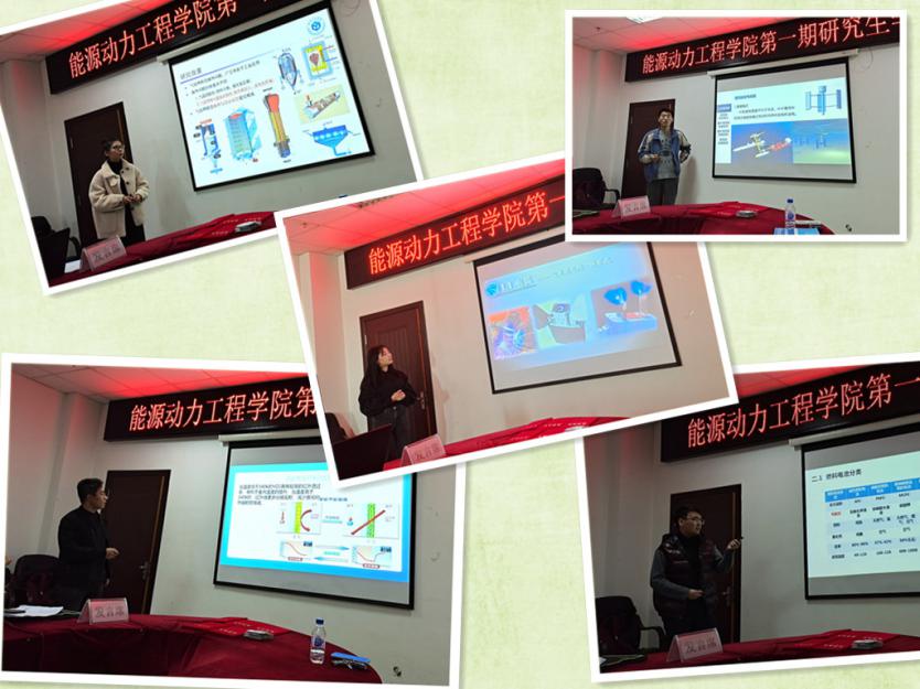会上,2019级研究生吴珊珊,2020级研究生谭雪梅、杨康喆、赵重阳、商子文五位同学分别就故障电弧检测、气固两相流换热、燃料电池热管理、潮流能发电以及热致变色材料等问题的研究现状及发展作了学术汇报。参会教师同每一位学生都进行了充分的交流和讨论。