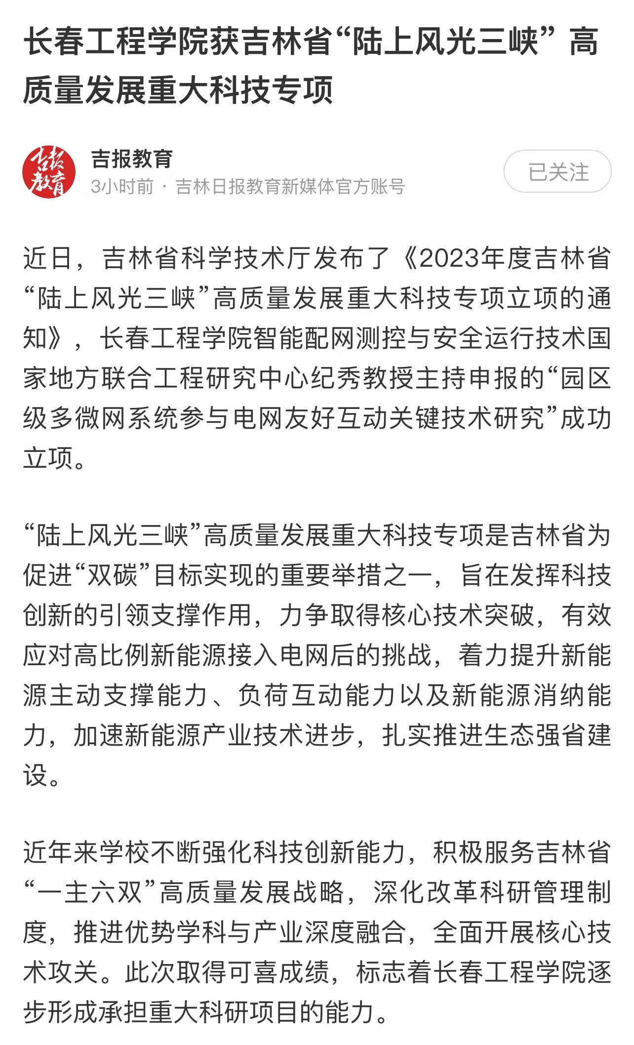 【人民日报-吉报教育】环球网_环球(中国)获吉林省“陆上风光三峡” 高质量发展重大科技专项