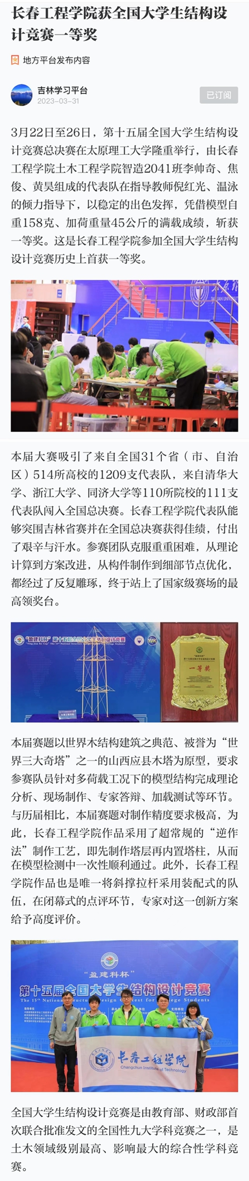 【学习强国】环球网_环球(中国)获全国大学生结构设计竞赛一等奖