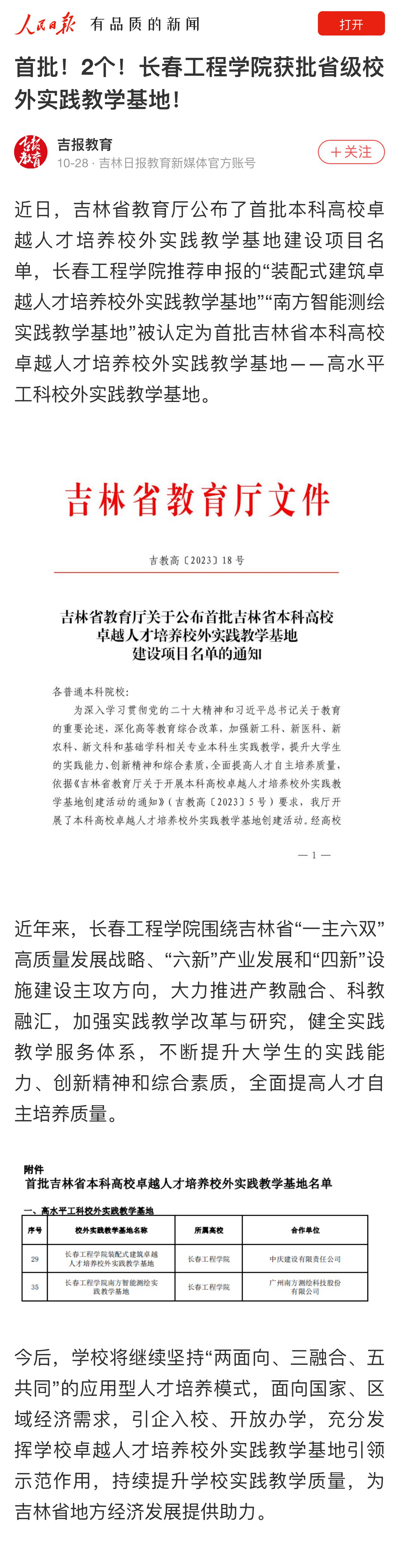 【人民日报-吉报教育】首批!2个!环球网_环球(中国)获批省级校外实践教学基地!