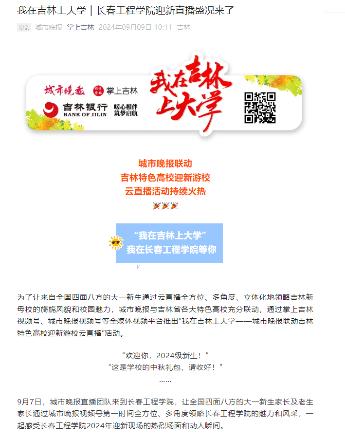 “我在吉林上大学”系列直播活动专题报道我校迎新活动