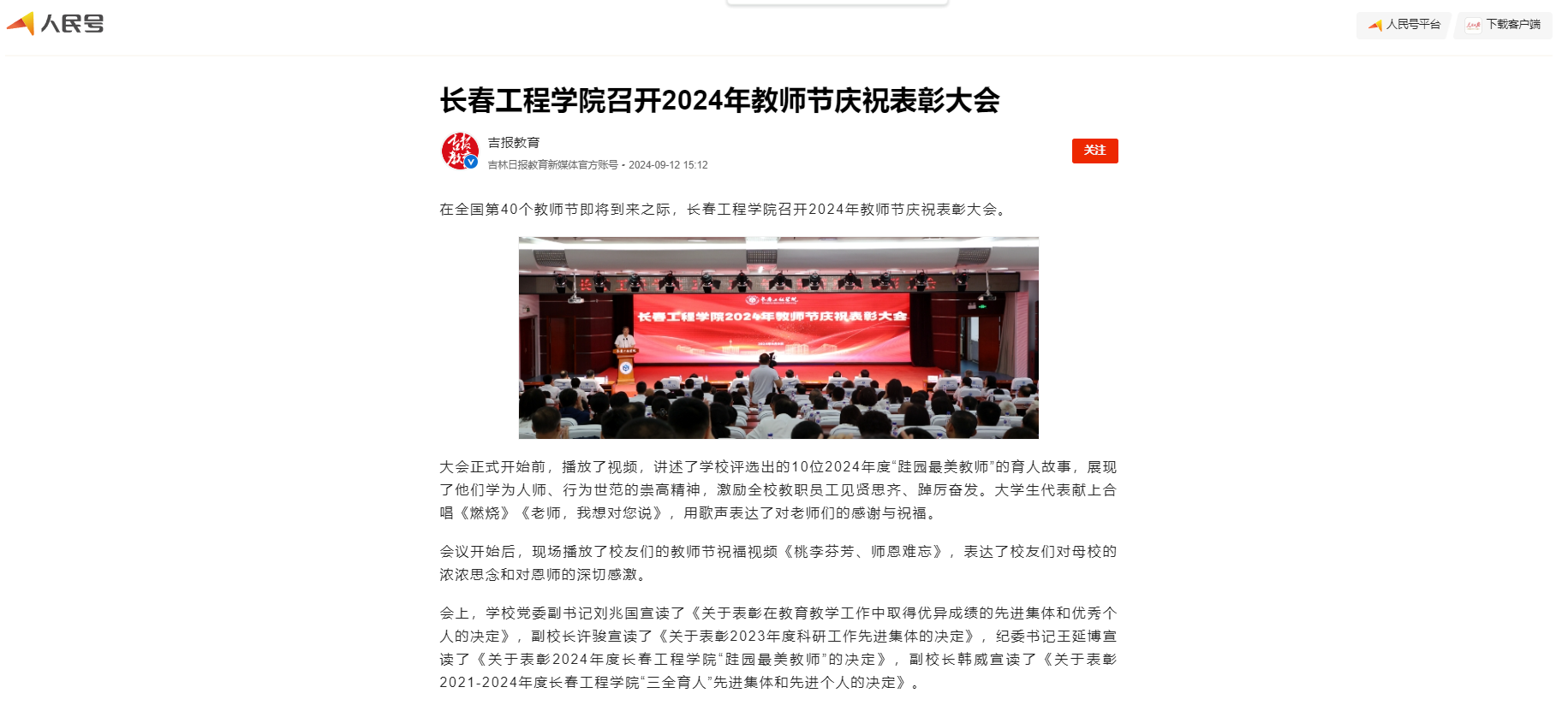 上一条:学习强国等媒体平台报道我校“青春铸魂大讲堂”首场报告会暨2024级新生第一堂思政课 下一条:【吉林日报】环球网_环球(中国)召开2024年教师节庆祝表彰大会
